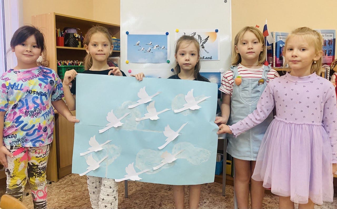 Дети узнали о значении праздника, посмотрели презентацию, послушали песню на стихи Расула Гамзатова «Журавли», посетили мини — музей.