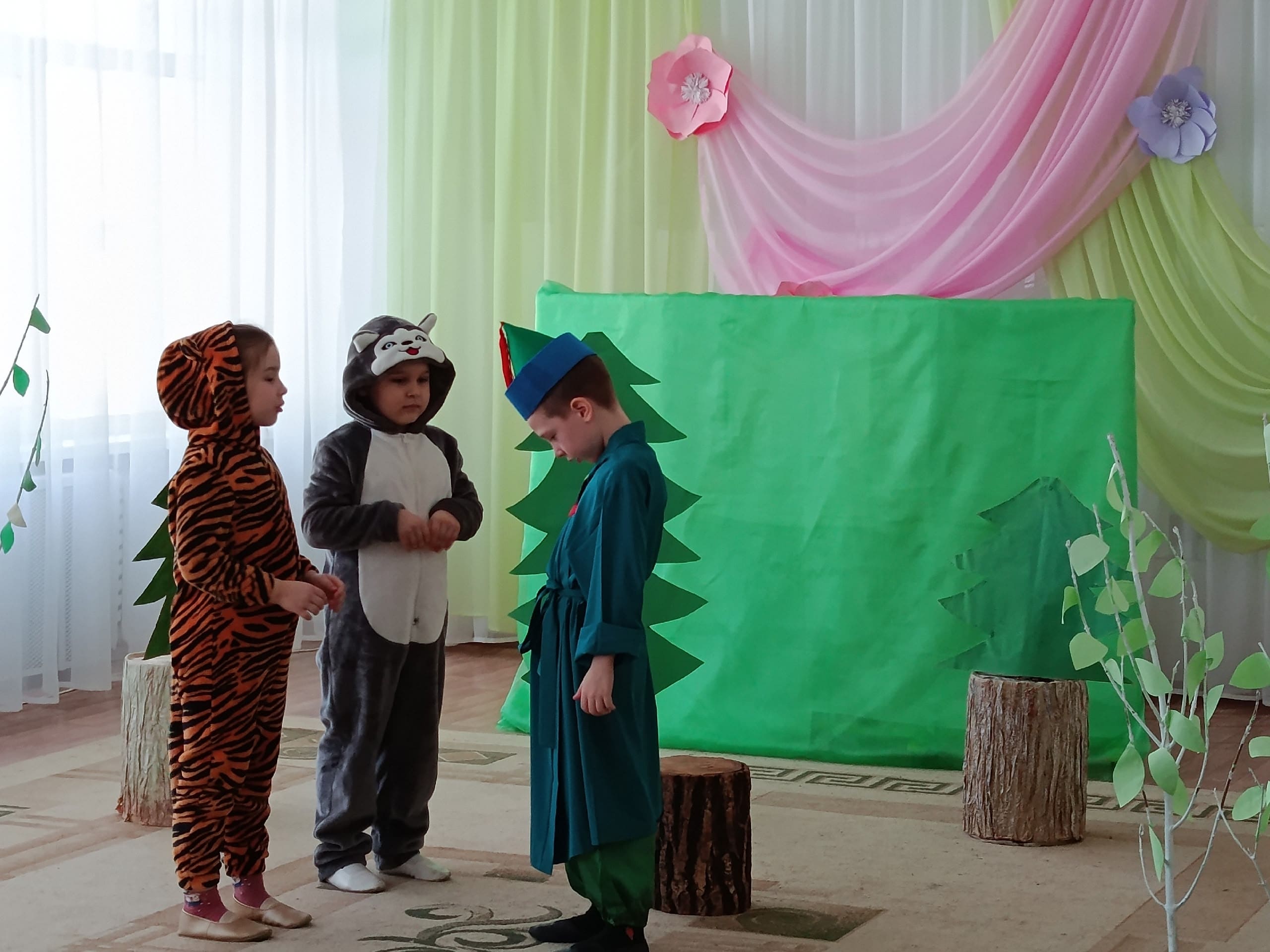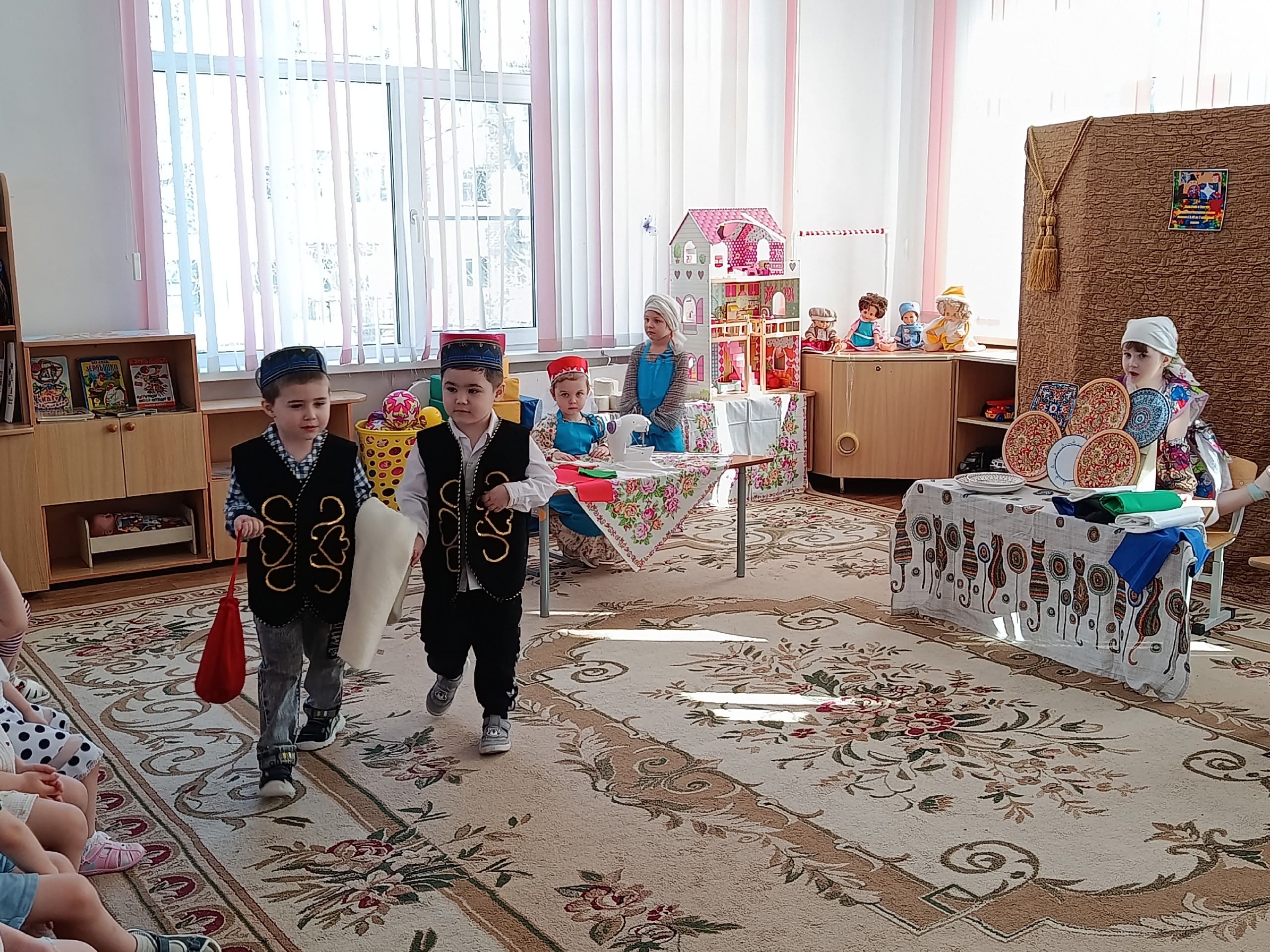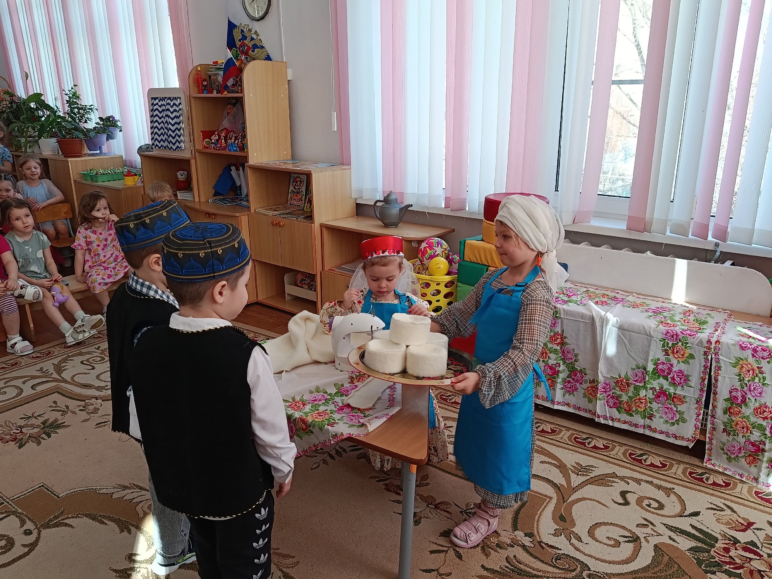 5 и 26 марта, дети вместе с воспитателями с энтузиазмом готовили яркие декорации, красочные костюмы, которые помогли им перевоплотиться в героев сказок. Педагоги и воспитанники подготовительной группы представили гостям инсценировку башкирской сказки «Азамат и курай», подготовительной логопедической группы бурятской сказки «Как собака себе друга-хозяина нашла», старшей логопедической группы белорусской народной сказки «Пых», старшей группы мордовской народной сказки «Пугливая мышь», средней группы русской народной сказки «Заюшкина избушка»,2 младшей группы армянской сказки «Заказчик и мастер».