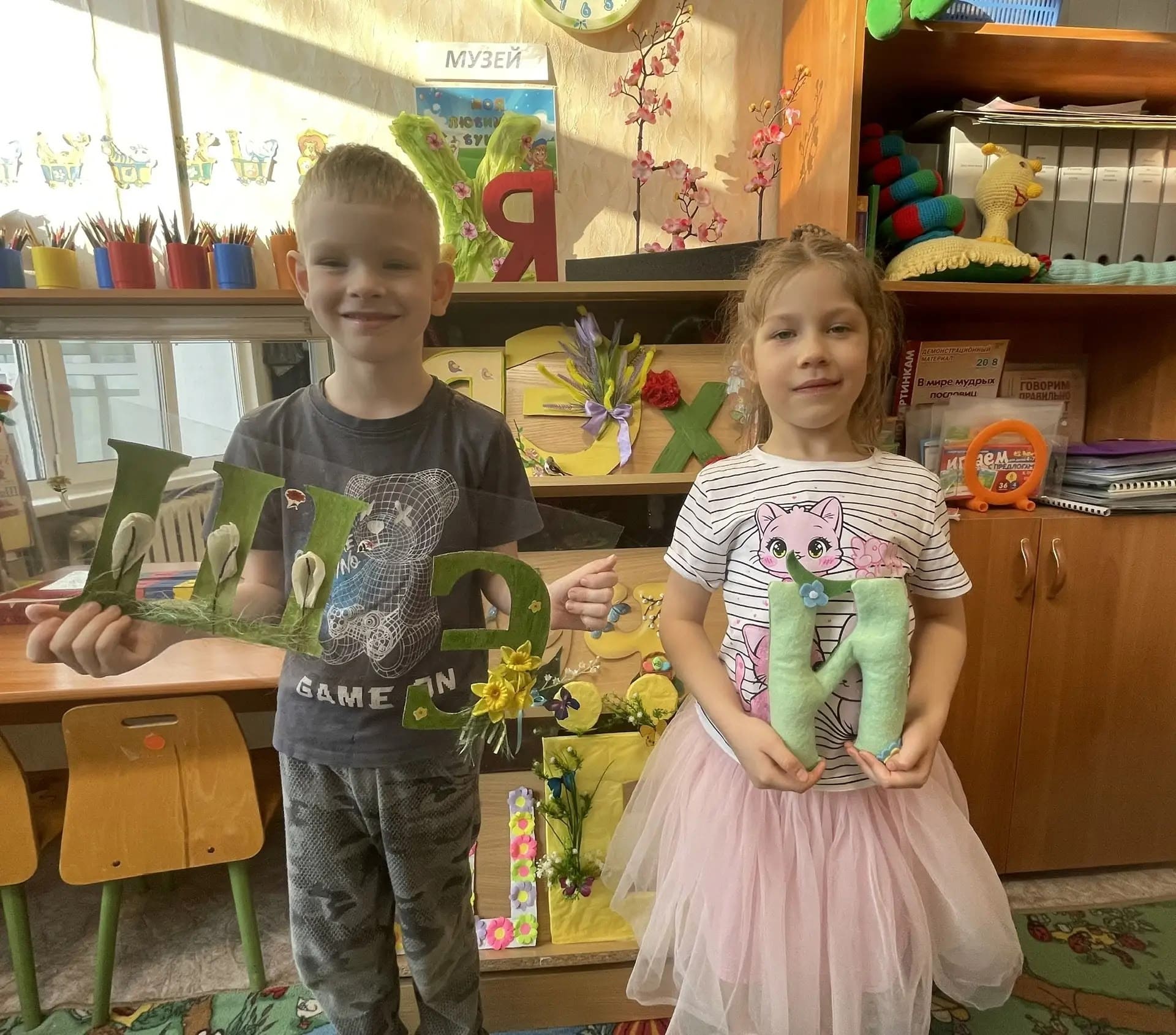 В музее» Моя любимая буква» ребята познакомились с весенними буквами, которые радовали детей на поляне.