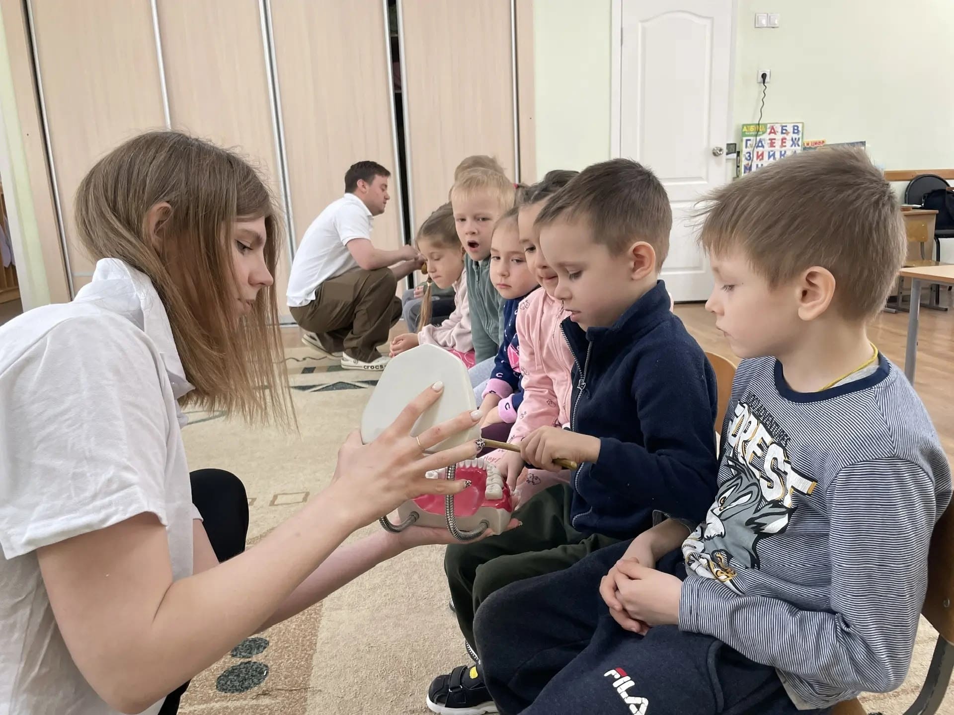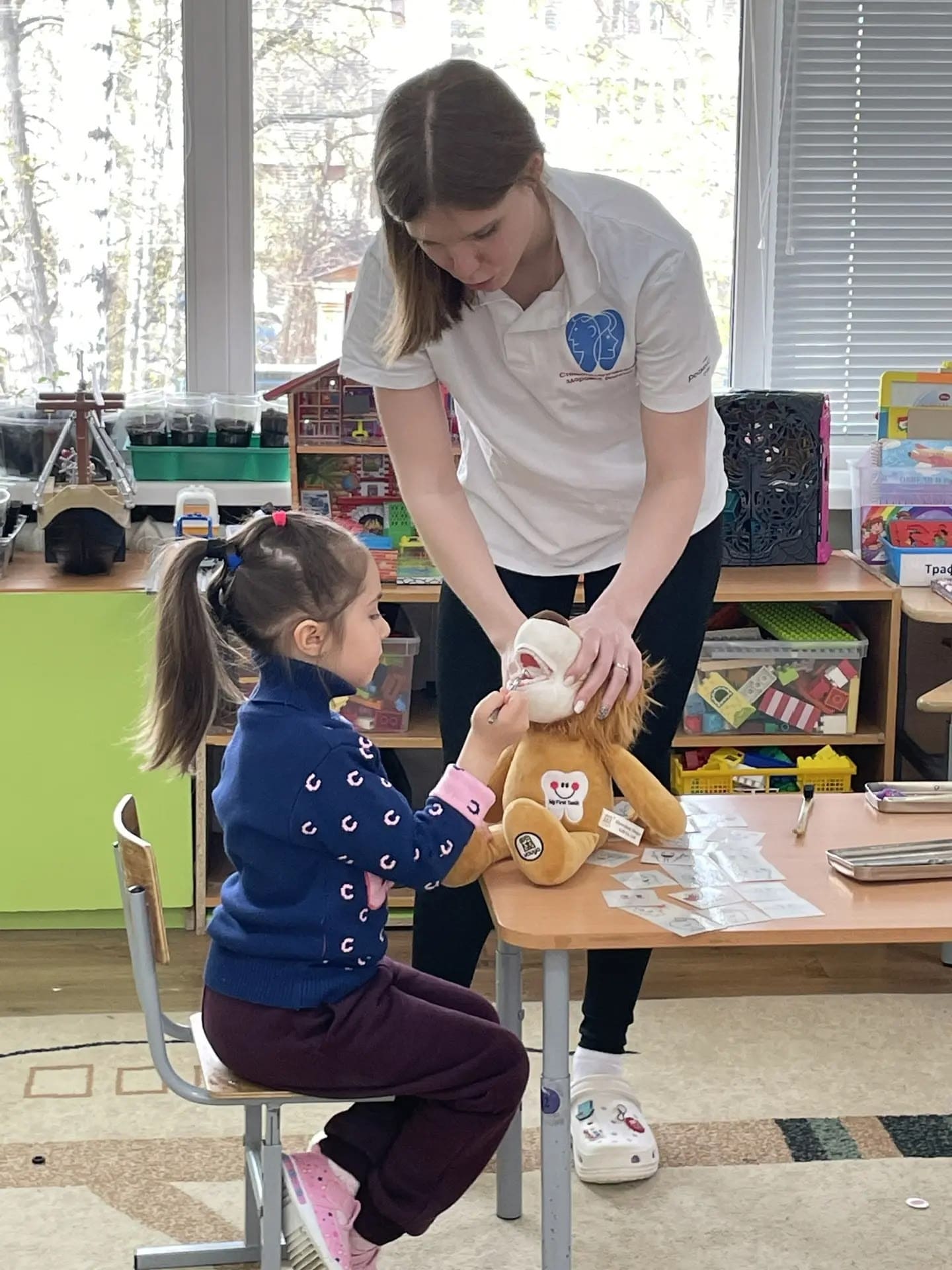 Особенно ребятам понравилось самостоятельно осматривать» плюшевого пациента» и реализовывать полученные навыки гигиены полости рта на нём.