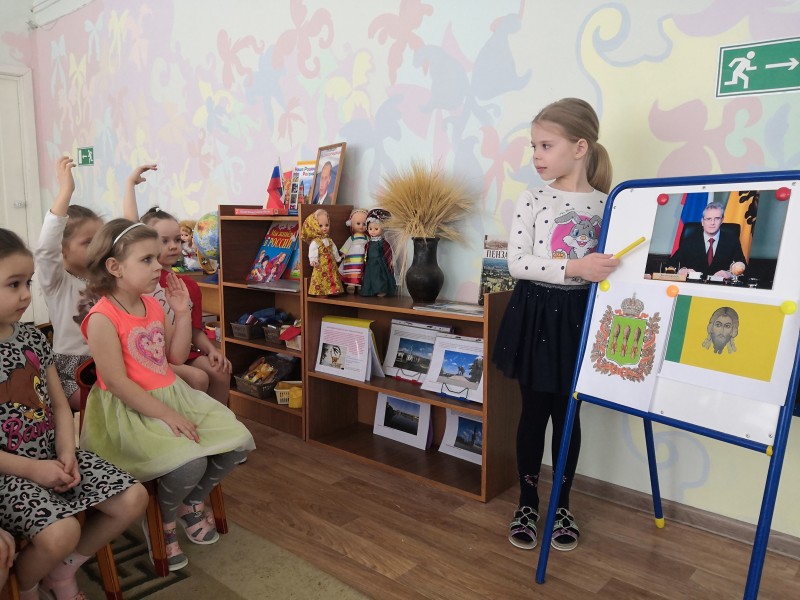 4 февраля в группах старшего дошкольного возраста прошли занятия по патриотическому воспитанию «В середине страны, у самого сердца России..». В ходе которых, воспитанники вспомнили название улиц, на которых живут, назвали памятные места в городе, где они побывали со своими родителями: памятник «Первопоселенцу», Монумент славы «Росток», Монумент воинской и трудовой Славы, краеведческий музей, Пензенский зоопарк. Послушали рассказы детей о музее одной картины, музее-усадьбе В.Г.Белинского. Посмотрели видеофильм «Добро пожаловать в Пензенскую область!» и послушали увлекательный рассказ об интересных местах Пензенской губернии, таких как музей-усадьба М.Ю.Лермонтова «Тарханы», музей хрусталя в Никольске, музей живой воды в Куваке. Также дети продолжили знакомиться с народами, живущими на территории нашего края, их бытом, традициями, с историей национального костюма (русского, татарского, мордовского, чувашского). Ещё дети узнали о первом воеводе града Пензы, о том, каким был наш город-крепость в том далеком 1663 году, и что сохранилось с тех давних времен до наших дней.