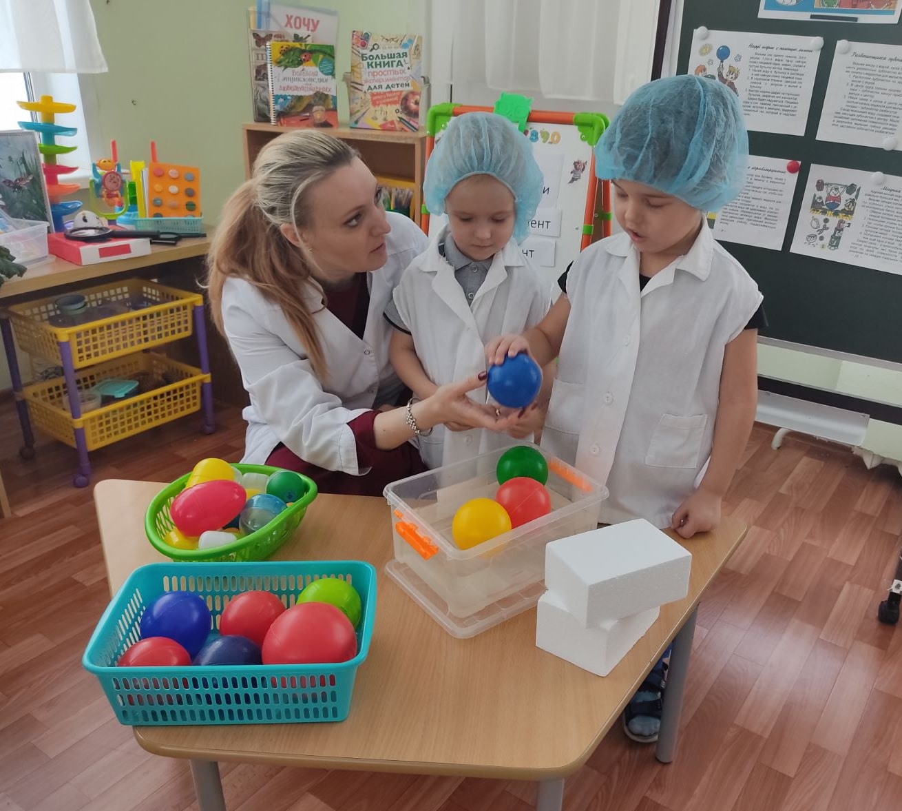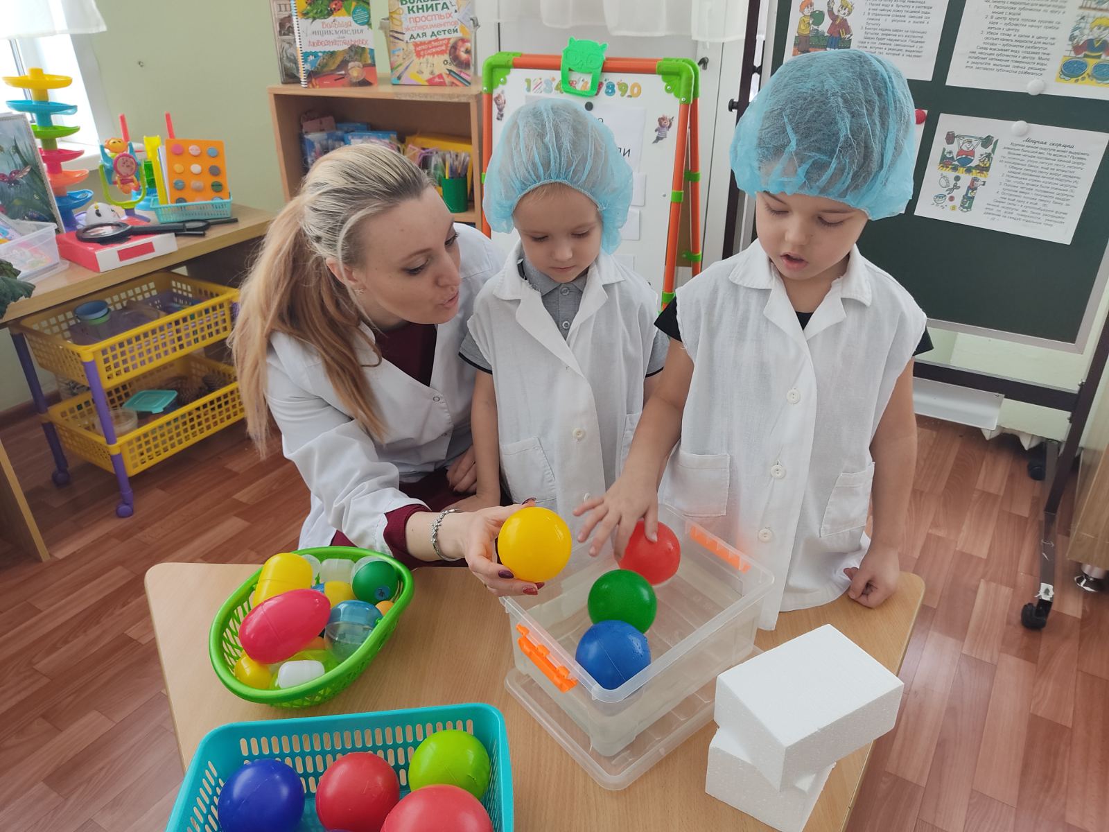 В средней группе №2 дети с воспитателем побывали в детской лаборатории, где провели опытно-экспериментальную работу с водой, способствующую развитию наблюдательности, любознательности и познавательной активности у дошкольников. Так, в ходе наблюдения, дети самостоятельно пришли к выводу, что легкие предметы даже под воздействием силы в воде не тонут.У детей расширяются представления о свойствах воды, о свойствах предметов. Будущие исследователи не боятся выдвигать гипотезы и проверять их опытным путём. Капли красителя, пробивающиеся через пену и спадающие вниз потоками, завораживают. Дети остались довольны и получили новые знания, а также положительные эмоции.
