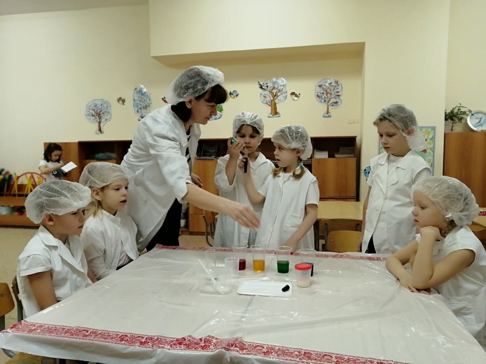 В подготовительной к школе логопедической группе прошло увлекательное занятие по опытно-экспериментальной работе на тему «В гостях у капельки». Дети узнали много нового и интересного. Ребята с воспитателями провели много опытов с водой, учились делать выводы. Проведённые опыты закрепили знания детей о свойствах воды, расширили представления об окружающем мире через знакомство с основными физическими свойствами и явлениями.После проведения опытов состоялась небольшая беседа о значении воды в жизни человека и природы. О том, что необходимо беречь воду, так как всё живое на земле без неё погибнет. Дети нарисовали «Капельку», вырезали её и прикрепили в тех местах, где необходимо беречь воду. С уверенностью можно сказать, что опытно-экспериментальная работа прошла успешно и результативно!