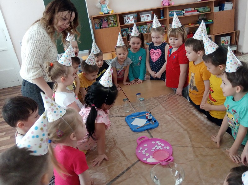 В средней группе №1 дети превратились в «маленьких волшебников» и отправились в волшебную страну. Во время путешествия дети расширили свои представления о свойствах воды и бумаги.