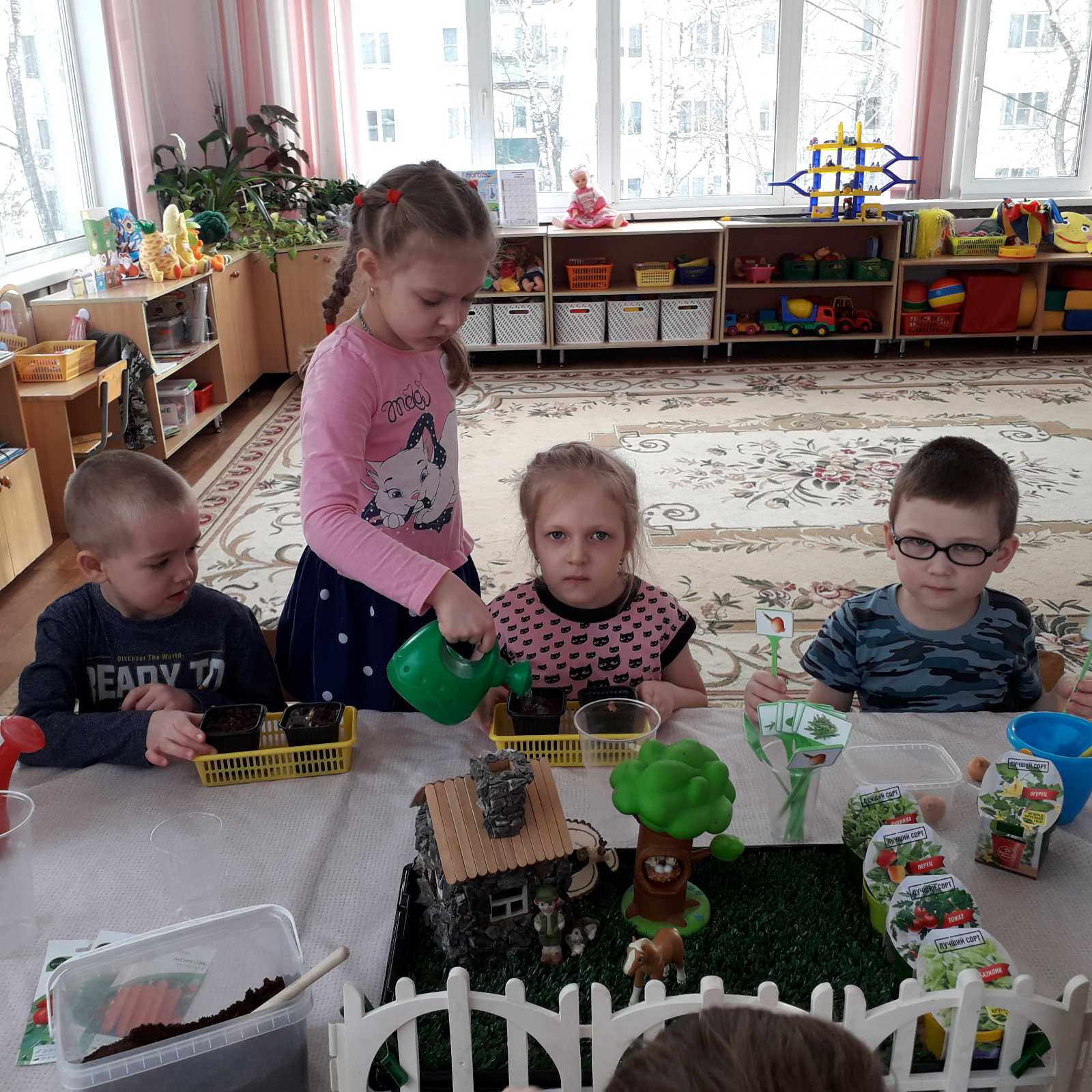 Скоро долгожданная весна — время тепла и обновления в природе, время посевной. Дети старшей группы вместе с воспитателями начали проект «Огород на подоконнике». «Огород на подоконнике» способен расширить представления детей о растениях, как живых организмах, об условиях, необходимых для роста и развития, развивать этическое чувство, умение радоваться красоте выращиваемых растений и результатом своего труда. В ходе проекта дети познакомятся с культурными растениями. С помощью опытнической работы они получат необходимые условия для роста растений. С помощью исследовательской работы будут выявлять многообразие и разнообразие посевного материала. На практических этапах дети высадили сами растения — томат, огурец, перец, базилик, лук, чеснок. С этого момента воспитанники начали ухаживать за посевами, поливать их и наблюдать за всходами. Впереди их ждёт много интересных наблюдений и открытий!!!