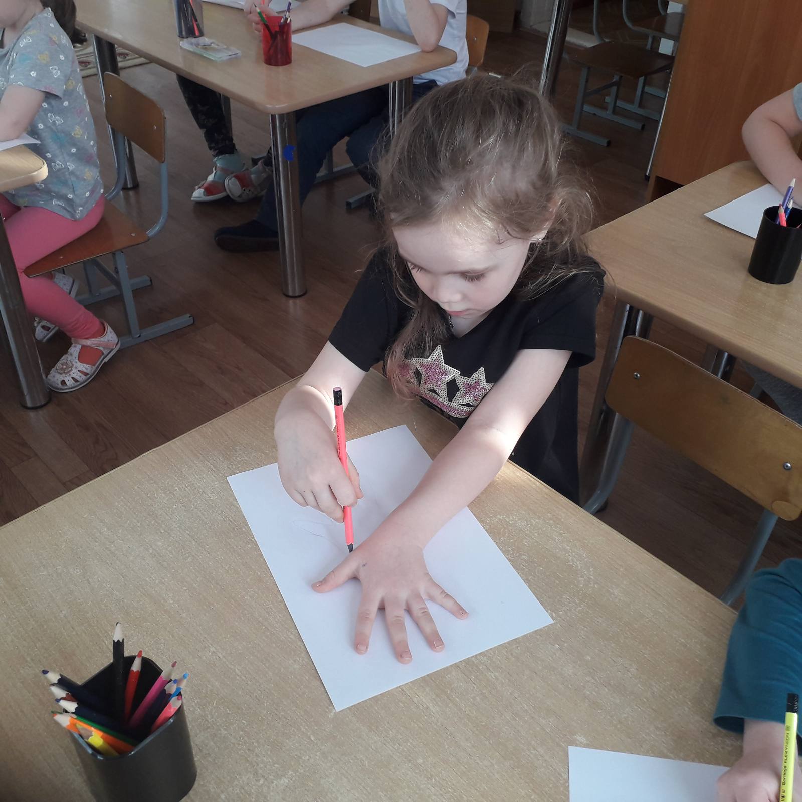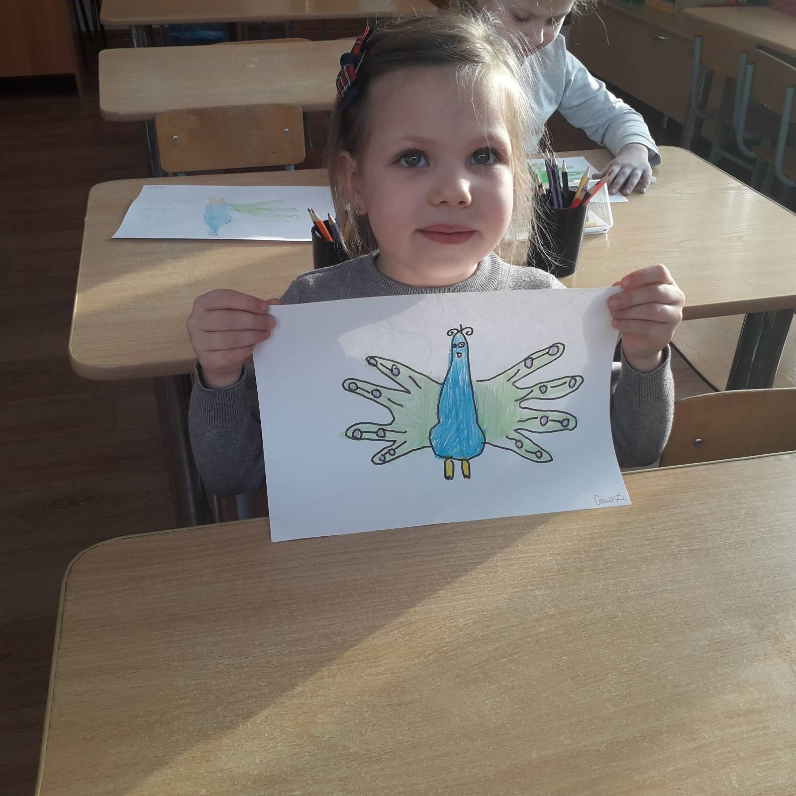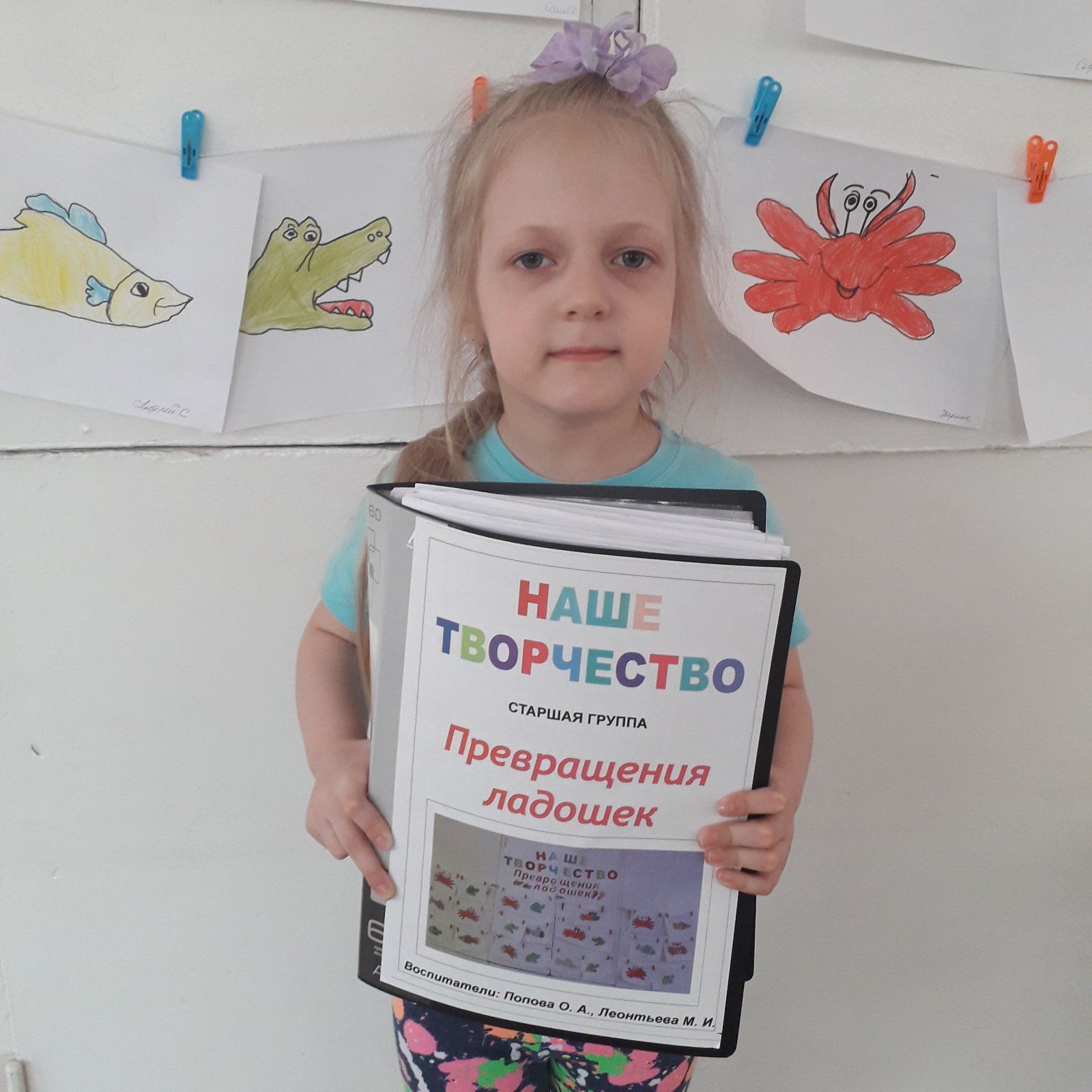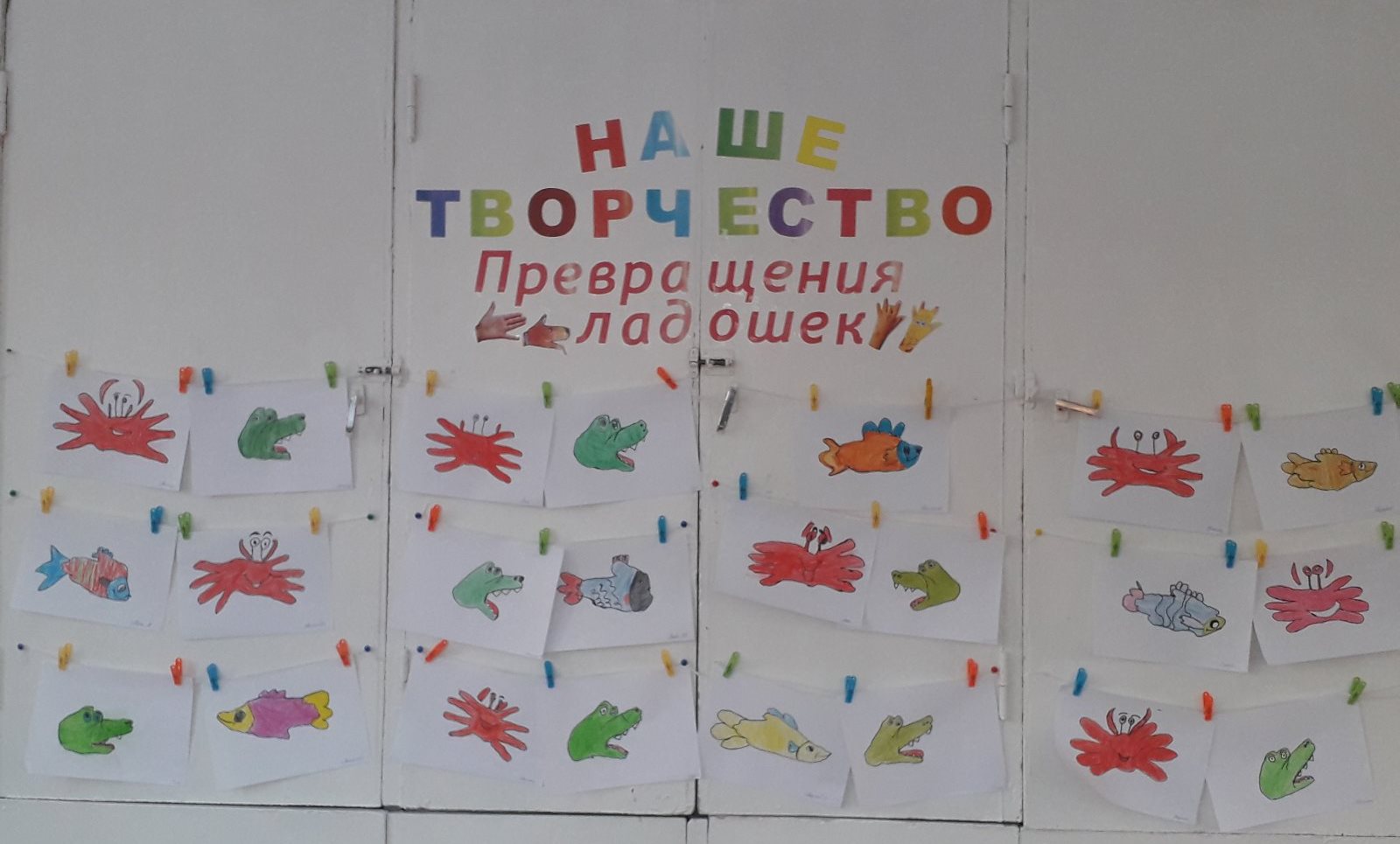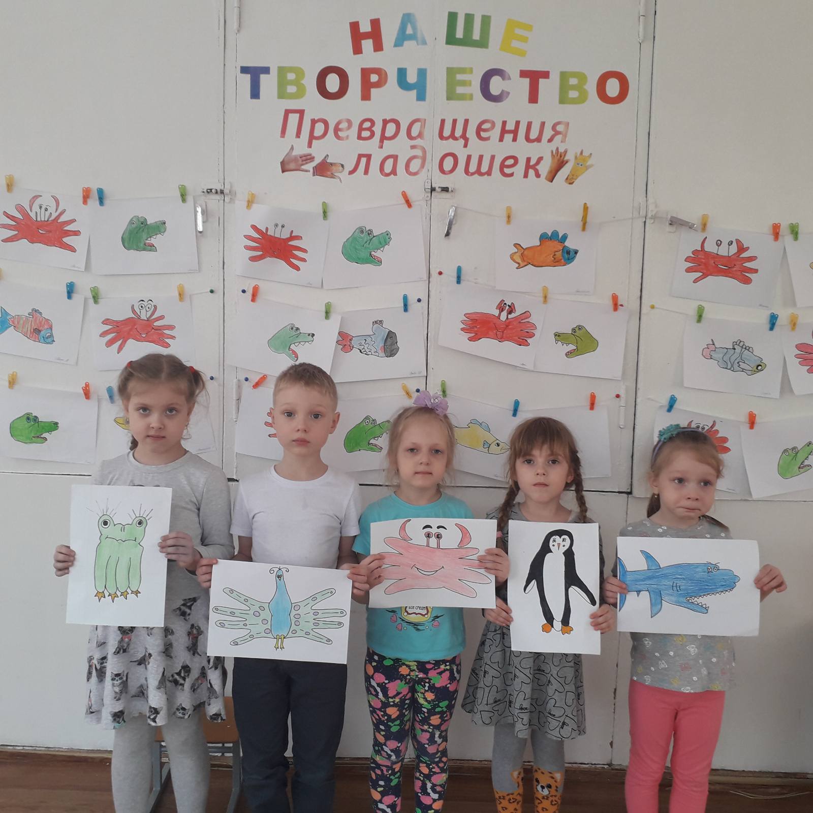 Три месяца (январь, февраль, март) воспитанники старшей группы вместе с воспитателями Леонтьевой М. И., Поповой О. А. превращали свои ладошки в интересные образы — дикие животные, домашние животные и птицы, обитатели различных водоёмов. В помещении группы была организована сменная выставка детских работ «Превращения ладошек». За это время был собран каталог рисунков, который дети совместно с родителями с большим интересом рассматривают, обсуждают увиденное, фантазируют.