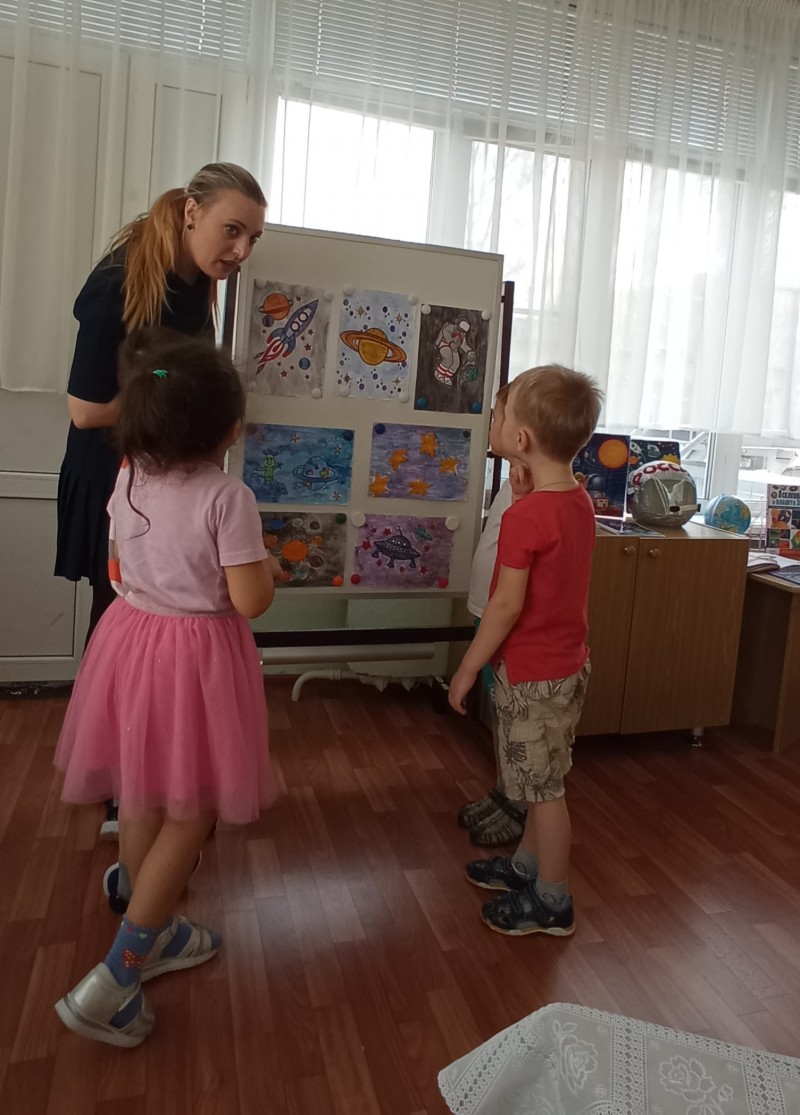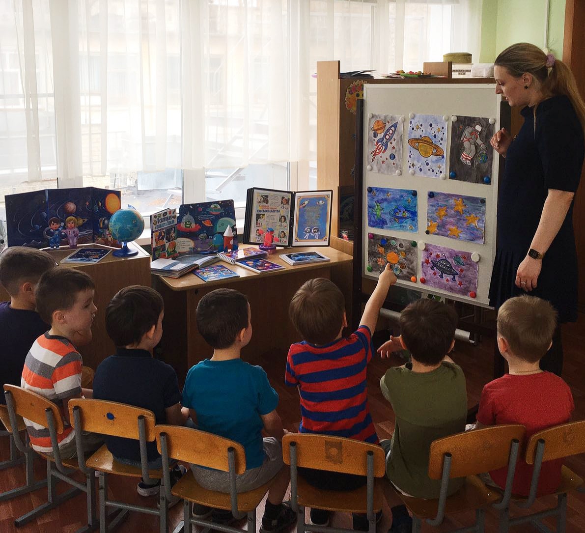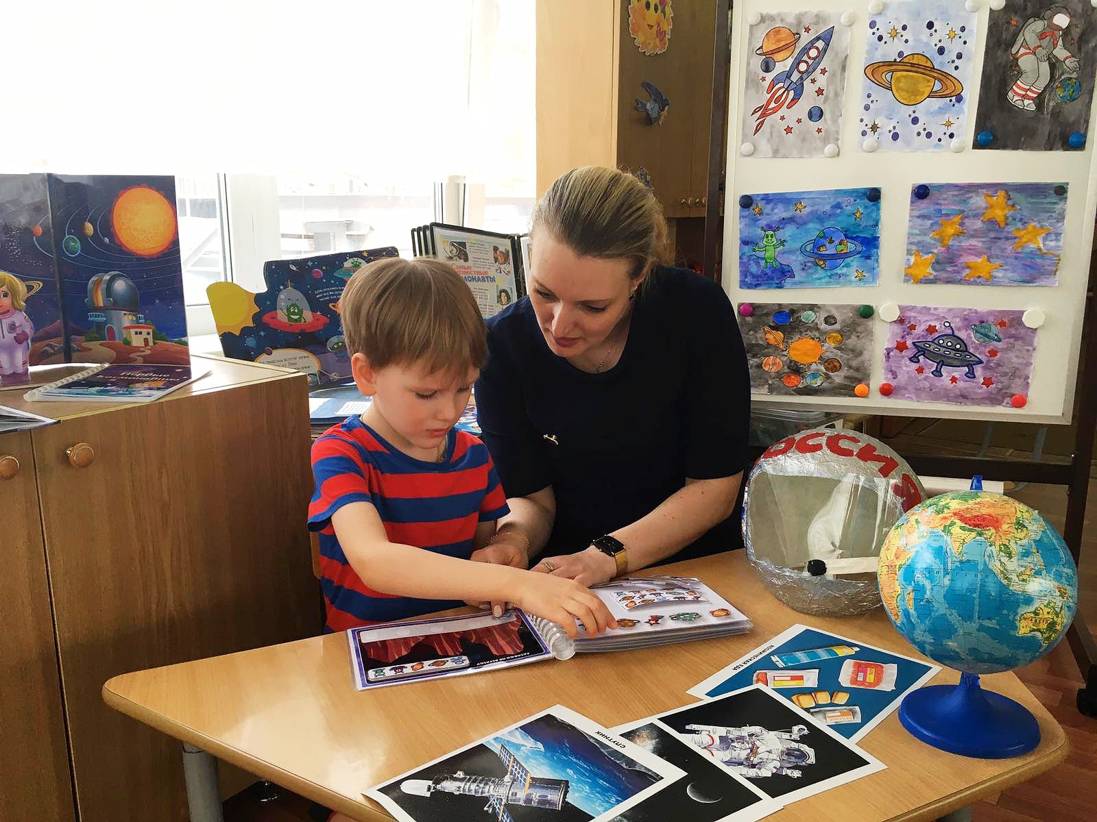 На познавательном занятии дети с большим интересом слушали рассказы о Юрии Гагарине, узнали много интересного о первых космонавтах, планетах Солнечной системы. Рассматривая книги, представленные на выставке, организованной совместно с родителями, дети все больше узнавали о тех качествах, которыми должен обладать космонавт и с большим удовольствием примеряли на себя эту роль. Теперь у некоторых ребят появилась мечта — полететь в космос. Кто знает, быть может,