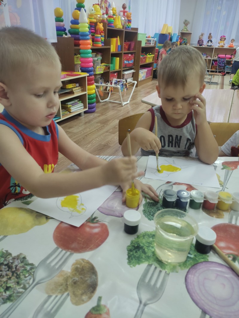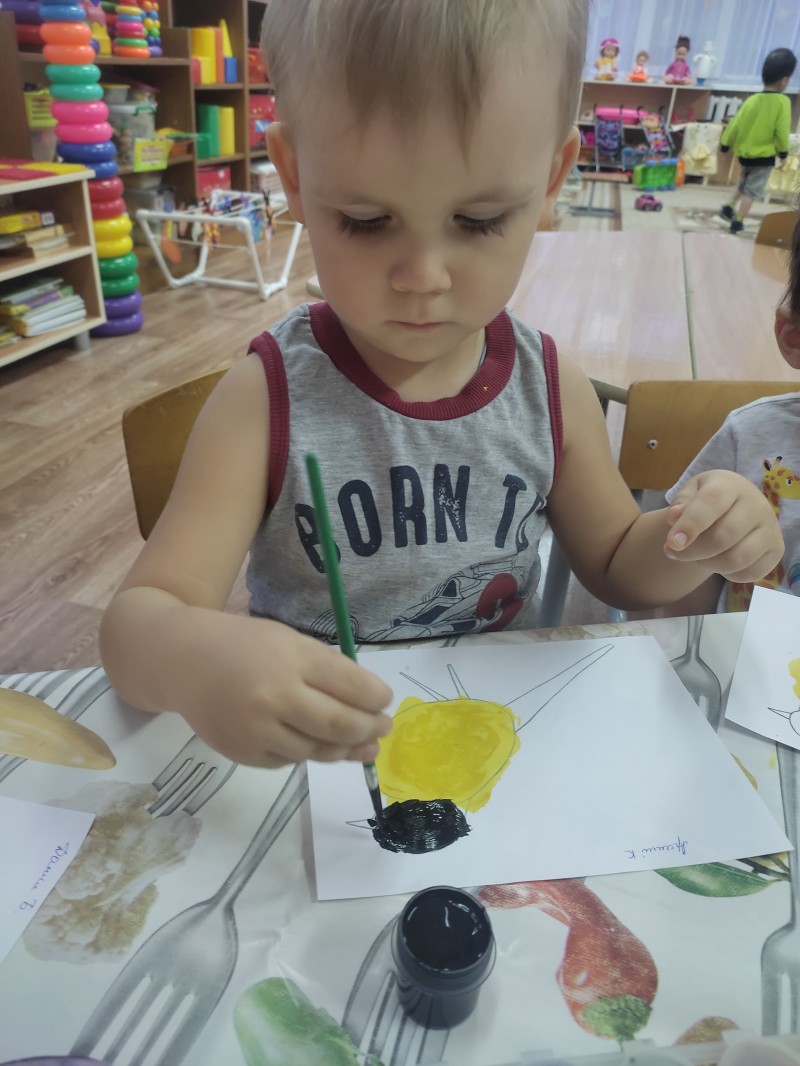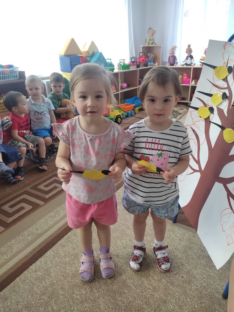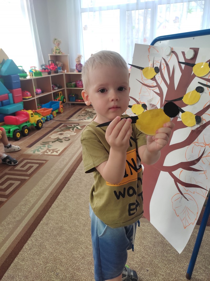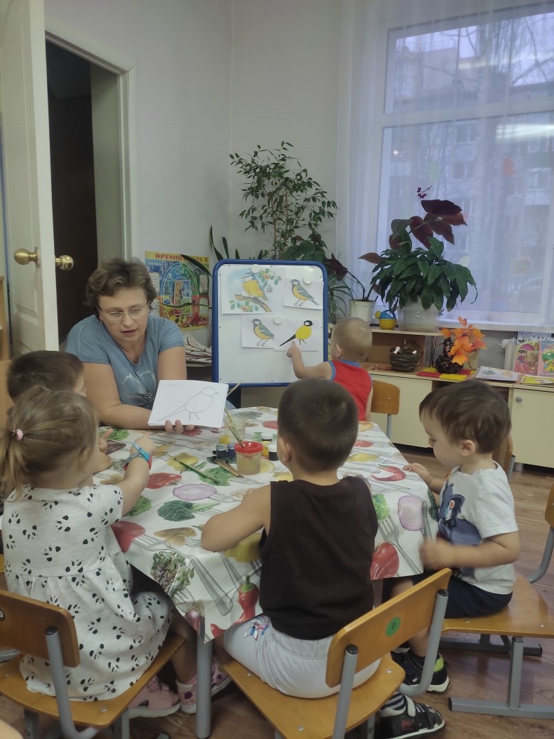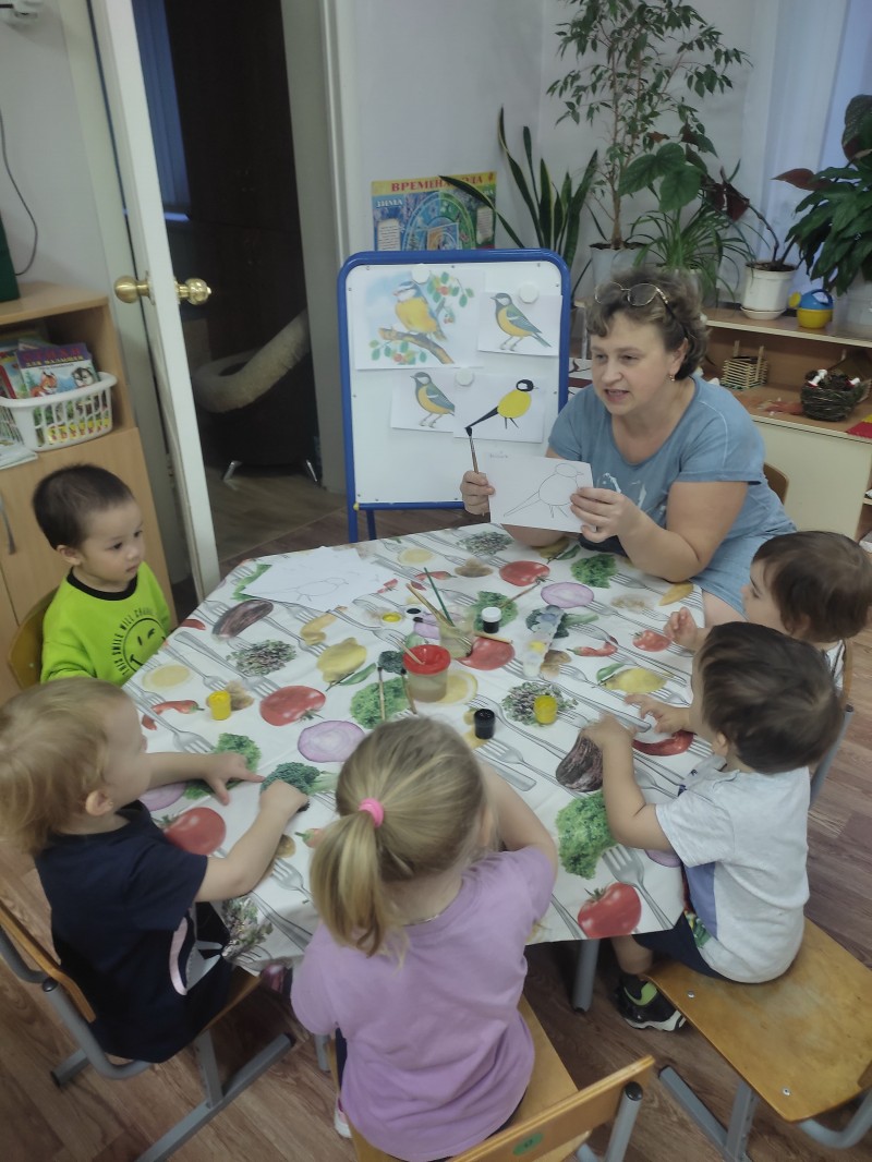 Дети 1 младшей группы (воспитатель Иноземцева Н. С.) познакомились с внешним видом синицы, особенностями окраски, строением ее тела(голова, туловище, хвост), а также с удовольствием проявили свои творческие способности.