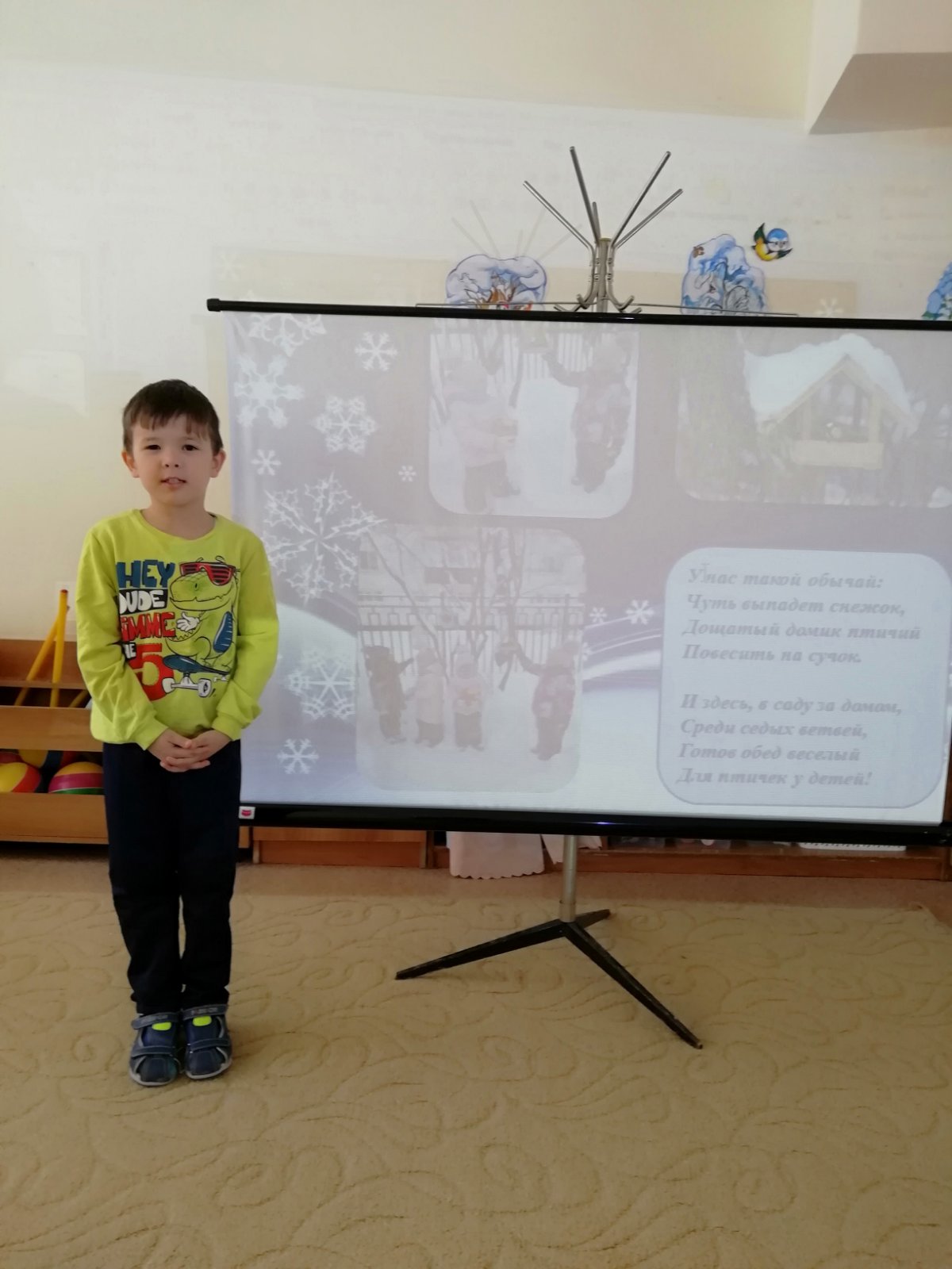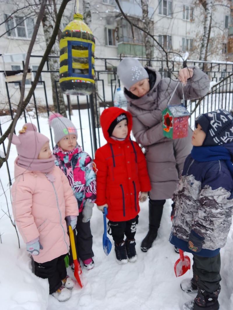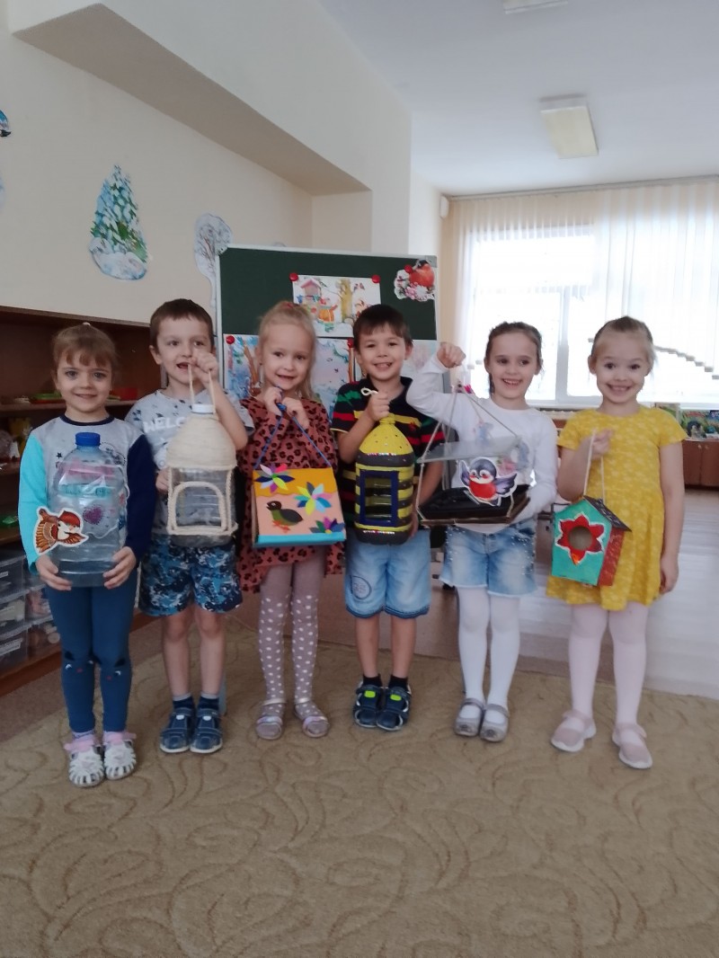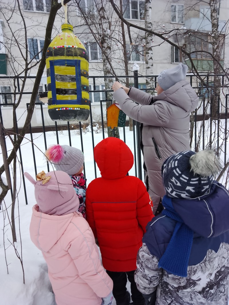 Дети старшей группы (воспитатели Малышева О. Н., Голянина Н. В.) приняли участие в экологической акции «Помощь птицам». Ребята посмотрели презентацию «Покормите птиц зимой». Вместе с родителями они смастерили кормушки и принесли разные угощения для птиц (крупы, сало, семечки). В эти зимние холодные дни птицы будут рады таким угощениям!