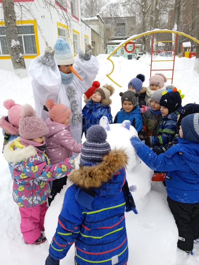 В этот день ребята средней группы №1 (воспитатели Проскурина Ю. А., Кутьменева Ю. В.) познакомились с историей праздника, читали стихи и сказки о снеговике, изготовили аппликацию «Снеговик», а на прогулку к детям пришёл настоящий снеговик⛄! Вместе с ребятами весело и задорно они провели время на свежем воздухе!!!