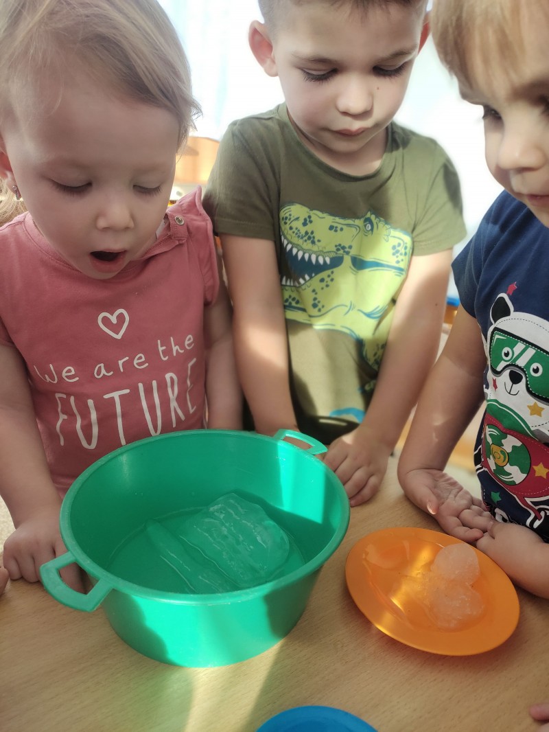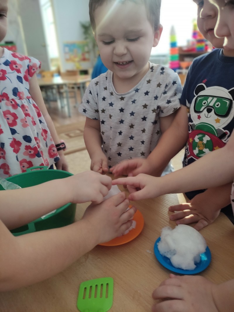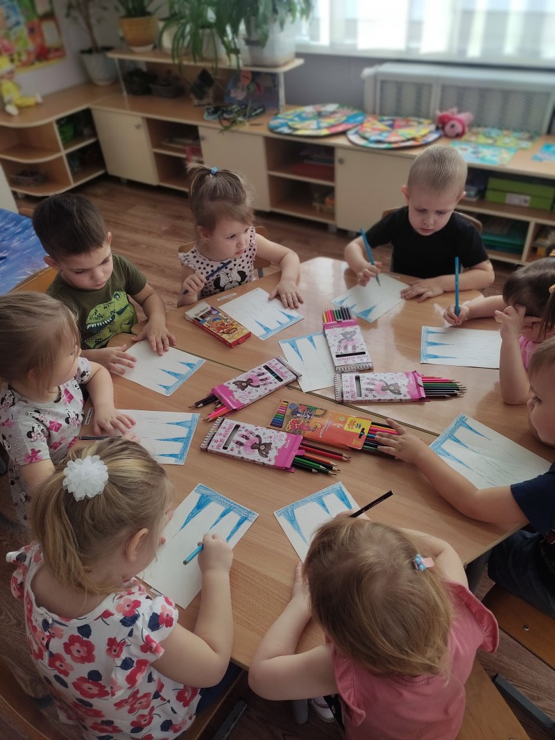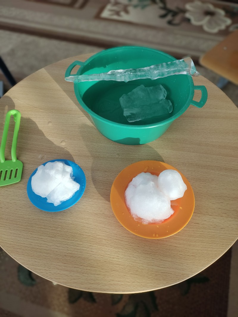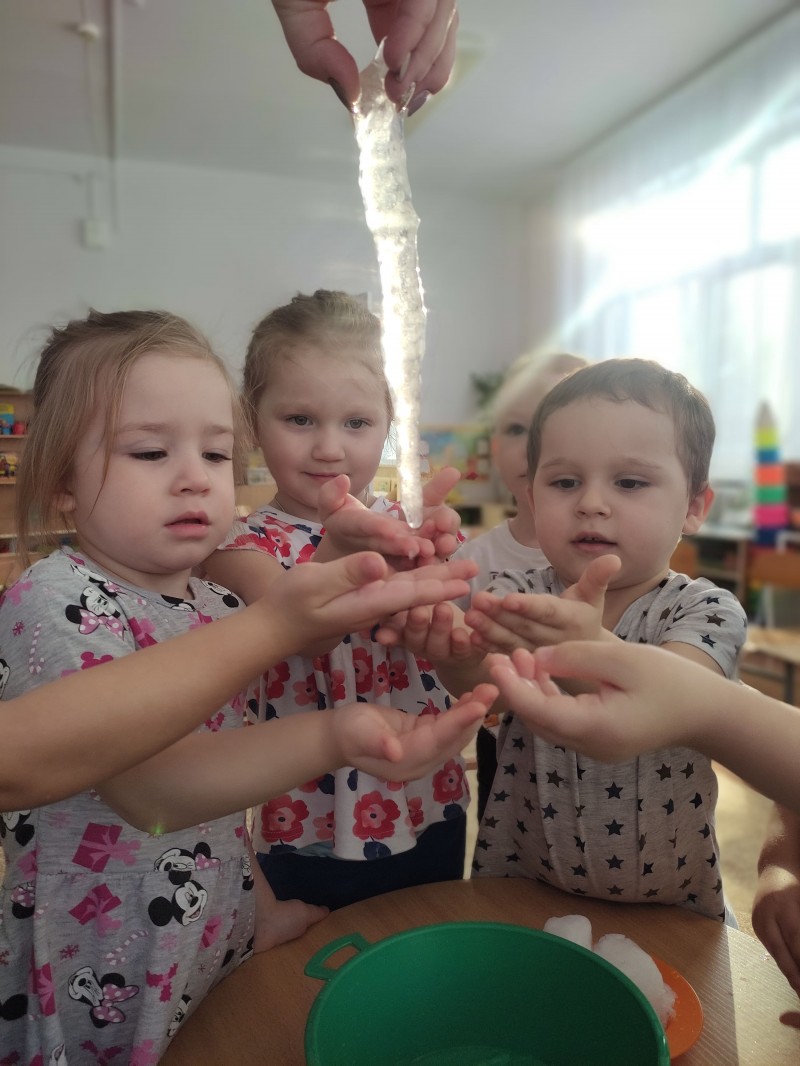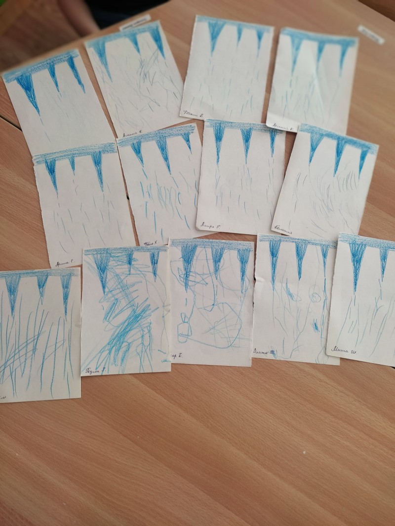 Чтобы наглядно показать детям, как «плачет» сосулька, в группу были принесены сосульки разной величины и снег. Перед занятием была проведена беседа о Зиме, ее признаках, рассматривали сюжетные картины «Времена года», «Зима», тематический альбом «Зима», играли в дидактические игры «Подбери картинку», «Признаки зимы». Большой интерес вызвали сосульки и снег в группе, вспомнили физкультминутку «Раз рука, два рука — лепим мы снеговика…», дети с восторгом наблюдали за тем, как умеет «плакать» сосулька, пытались делать выводы, устанавливать причинно-следственные связи, отвечали на наводящие вопросы. Огромное удивление было вызвано тем, что снег и сосульки превратились в воду… Кроме того поговорили с детьми об опасности, которые исходят от сосулек на крыше…