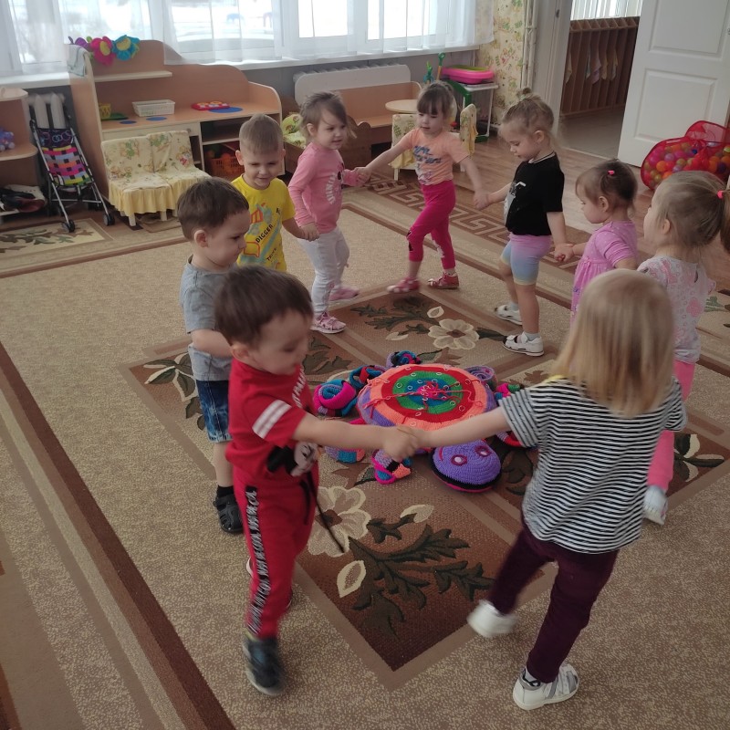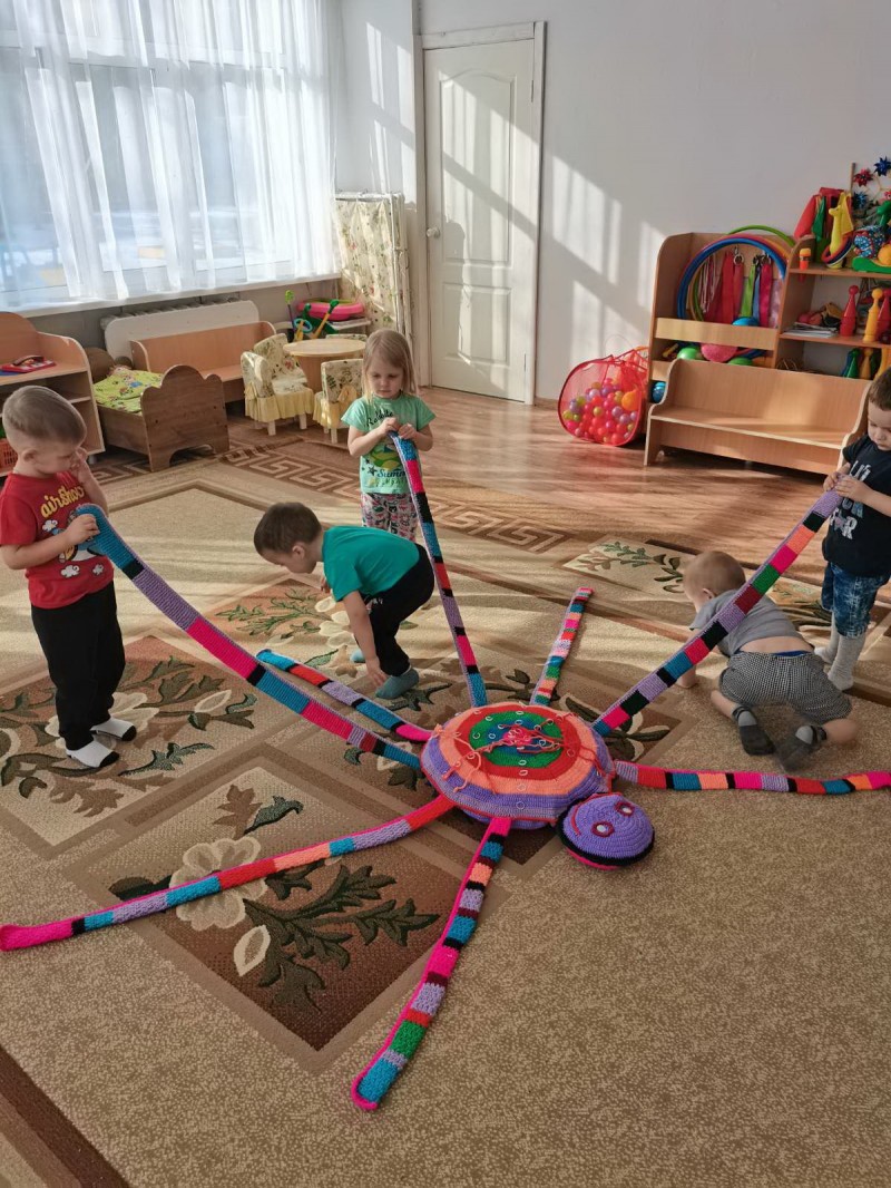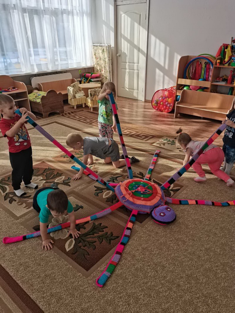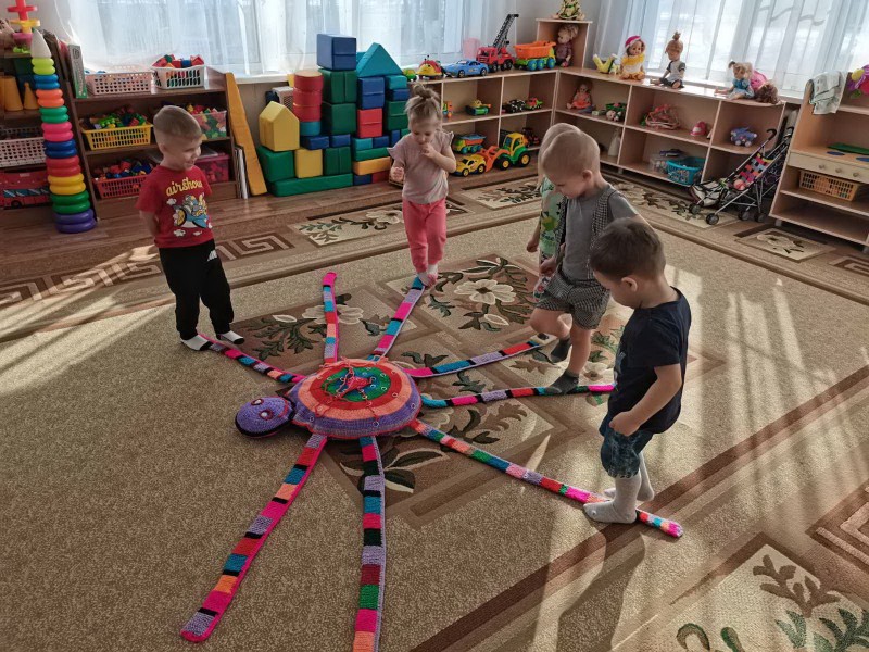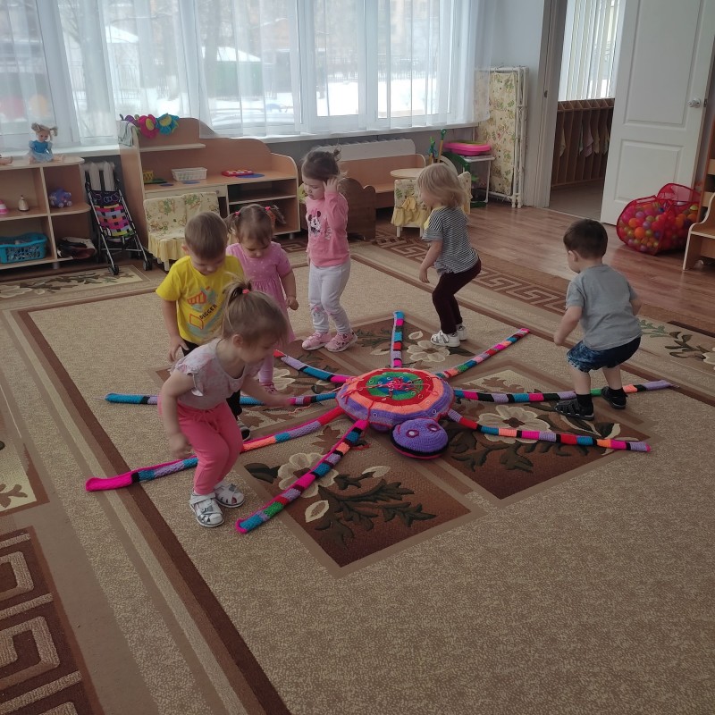 В 1 младшей группе (воспитатель Иноземцева Н. С., Давыдова Л. А.) тоже праздник – День здоровья! В гости к детям пришел добрый, веселый паучок Гоша. Он спортсмен! Дети с радостью встретили его, поиграли в хороводную игру «Пузырь», побеседовали о вредной и полезной еде, угощали Гошу, рассматривали его разноцветные яркие полоски, играли в шнуровку на его спинке, а те, кто немного устал, прилегли на его мягкую подушечку. Всем было очень весело! Для родителей подготовлены консультации по темам: «Бережем свое здоровье. Соблюдаем режим дня», «Дидактические игры „Здоровье“, «Игры по формированию здорового образа жизни», кроме того проведены беседы о важности личного примера родителей в формировании и становлении личности ребенка.