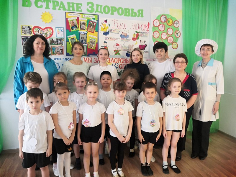 Инструктор по физической культуре Вершина Е. А., воспитатели Ламбанина Н. В., Волкова Н. В., Леонтьева М. И., Попова О. А., музыкальный руководитель Жерекова Л. В. провели с воспитанниками подготовительных к школе групп увлекательную квест-игру «Быть здоровым – это здорово!».