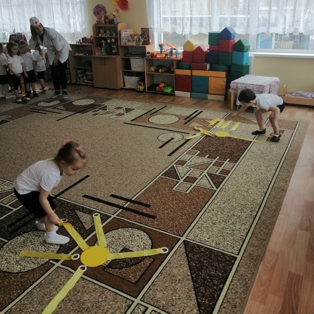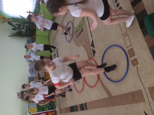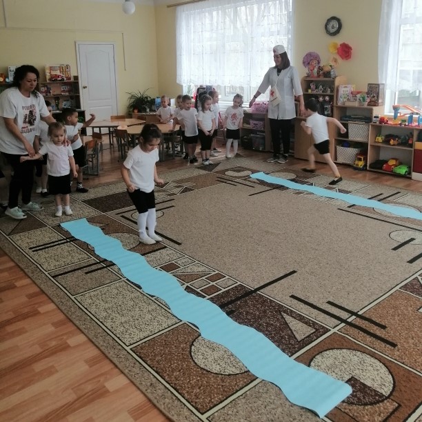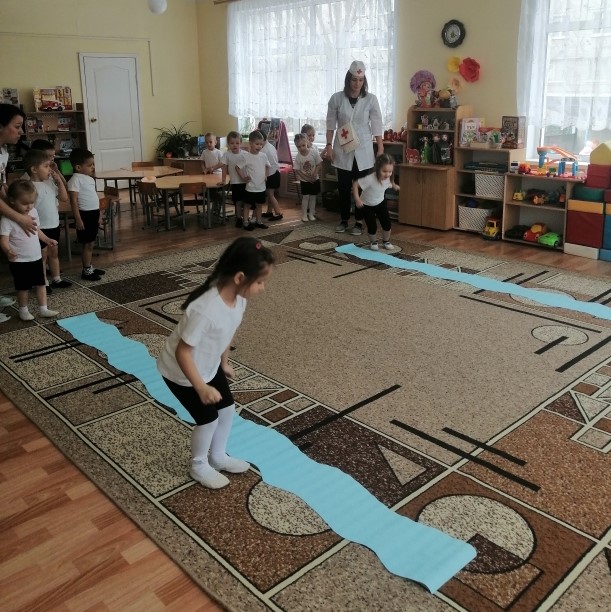 На станции «Режимная» ребята вспомнили режим дня и разложили картинки в последовательности выполняемых действий в течение дня. На станции «Витаминная» дети поиграли в словесную игру «Да или нет» и поучаствовали в эстафете «Полезно, вредно!». На станции «Гигиеническая» — поиграли в игру «Волшебный мешочек» и собрали разрезные картинки на тему «Личная гигиена». На станции «Спортивной» ребята поучаствовали в эстафетах, таких как «Прыжки в мешках», «Гонка мяча», «Попади в цель» и «Ползание под дугой». И в заключении дети побывали на станции «Закаливание», где поиграли в подвижную игру «Солнце, воздух и вода», а также «Сложи солнышко».