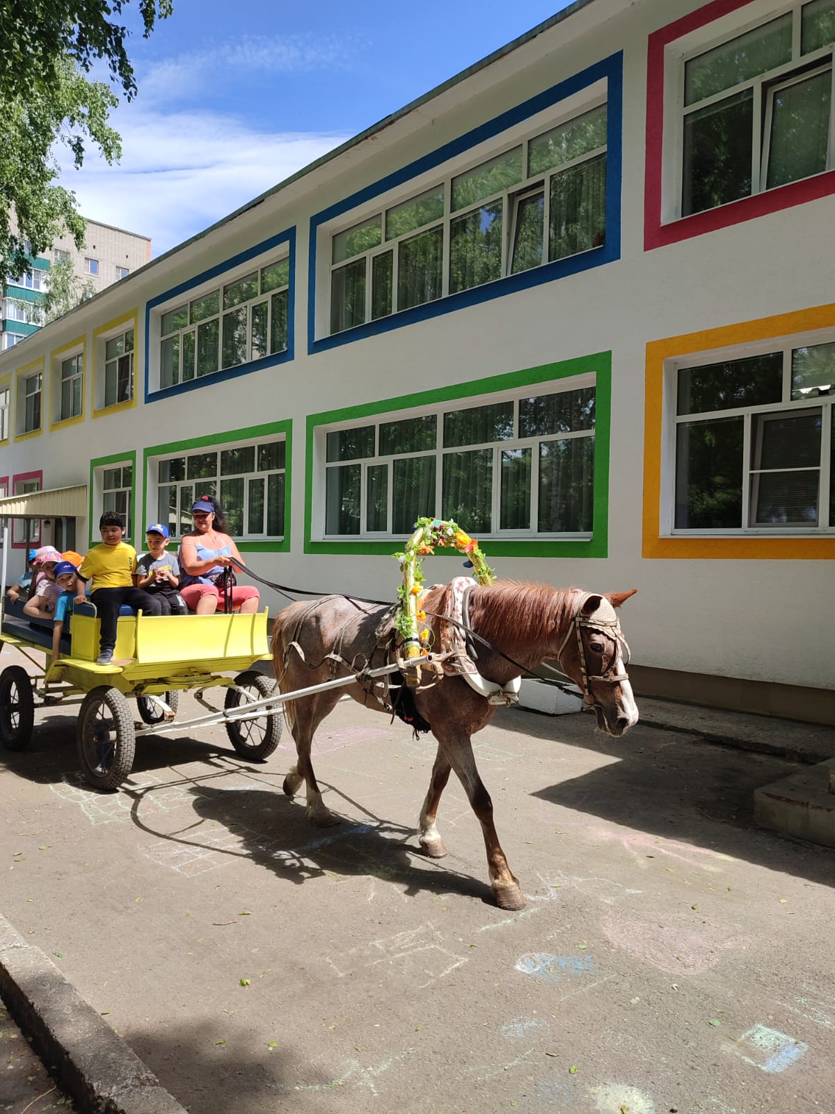 Общение с лошадью хорошо действует на эмоциональный фон ребёнка. Оно раскрепощает ребенка и даёт ему новые эмоции и чувства, которые он не получит в быту. Сегодня дети с радостью встречали лошадку Дашу. Ребята всегда с нетерпением ждут Дашу, они считают её своим другом. К приезду Даши дети готовят лакомства, а Даша с удовольствием катает детвору!!!
