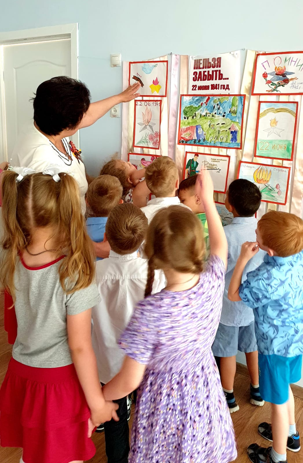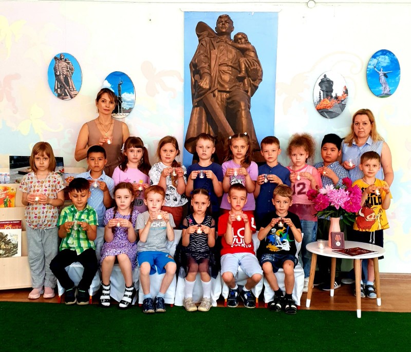 В истории нашей страны есть особые даты. Одна из важнейших – 22 июня День памяти и скорби по всем погибшим в годы Великой Отечественной войны. Воспитание любви к Родине невозможно без знания ее истории, великих и печальных дат. Поэтому День 22 июня более подходит для того, чтобы на историческом примере показать детям, насколько велик русский народ. Сегодня нашу литературную гостиную посетила заведующий читальным залом Городской библиотеки №2 им М.Е. Салтыкова – Щедрина Вяцкова Ирина Валентиновна. «В этот день мы можем лишь вспомнить всех тех, кто погиб, защищая Родину, кто был замучен фашистами, кто погиб от голода и холода, вспомнить о 27 миллионах наших соотечественников, погибших в годы той страшной трагедии, о 18 миллионах человек, замученных в концлагерях. В этот день Россия отмечает «День памяти и скорби». Это одна из самых печальных и трагичных дат в истории нашей страны» — сказала Ирина Валентиновна. С 15 июня в нашем детском саду в рамках реализации проекта «Дети Отечества» проходят мероприятия, посвященные Дню памяти и скорби. В эти дни педагоги детского сада проводят с ребятами беседы о Великой Отечественной войне, рассказывают о героизме советских солдат. Ребята читают стихи о войне, о подвиге нашего народа, о родной стране, о мире, слушают и исполняют песни военных лет, смотрят фильмы, в группах выпускают стенгазеты. На прогулке воспитатели групп организовали игры на военную тематику. Педагоги совместно с родителями и ребятами присоединились ко Всероссийской акции «Свеча памяти» под девизом: «Не гаснет памяти свеча». В конце мероприятий были зажжены свечи, и все присутствующие почтили минутой молчания тех, кто воевал и отдал свои жизни за нашу свободу.