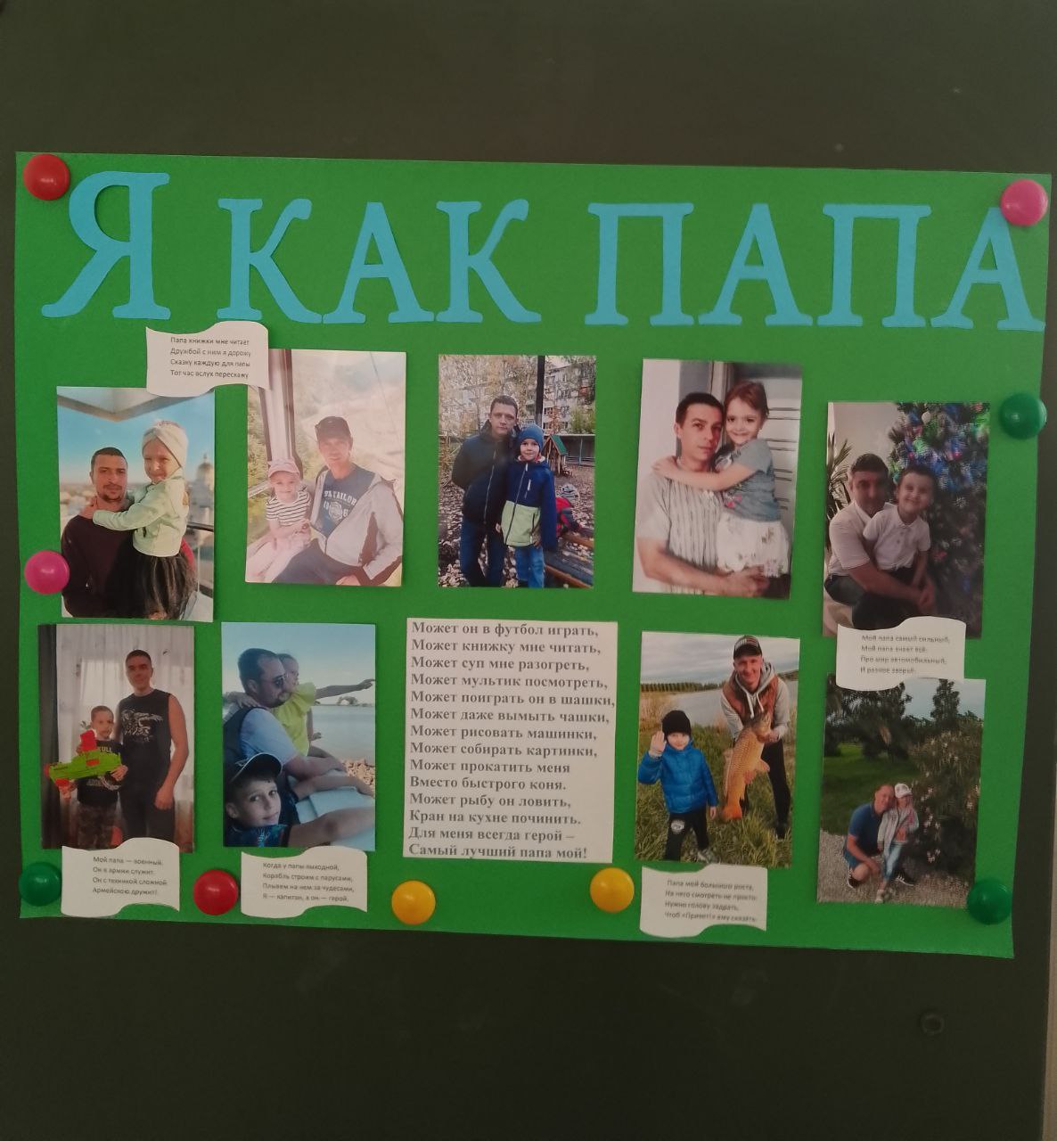 В России, начиная с 2021 года, отмечается важный семейный праздник – День отца, официально установленный Указом Президента РФ № 573 от 4 октября 2021 года «в целях укрепления института семьи и повышения значимости отцовства в воспитании детей». Дата его празднования – третье воскресенье октября. Этот праздник добрый и душевный. Это праздник беззаветной верности своему отцовскому долгу, способности относится к своим детям с безграничной любовью и терпением. Это день чествования тех пап, которые для своих сыновей и дочек смогли стать героями, примерами для подражания и вообще теми людьми, которые «могут», как в известной песне «всё, что угодно». В преддверии праздника в МБДОУ детский сад №123 г. Пензы «Семицветик» прошли различные тематические мероприятия: дети с педагогами подготовили стенгазеты, рисунки и подарки для пап, воспитатели подготовили и провели тематические консультации. Кульминацией праздника стал незабываемый футбольный матч, в котором приняли участие воспитанники подготовительных к школе групп и их папы. Всех пап поздравляем с праздником!