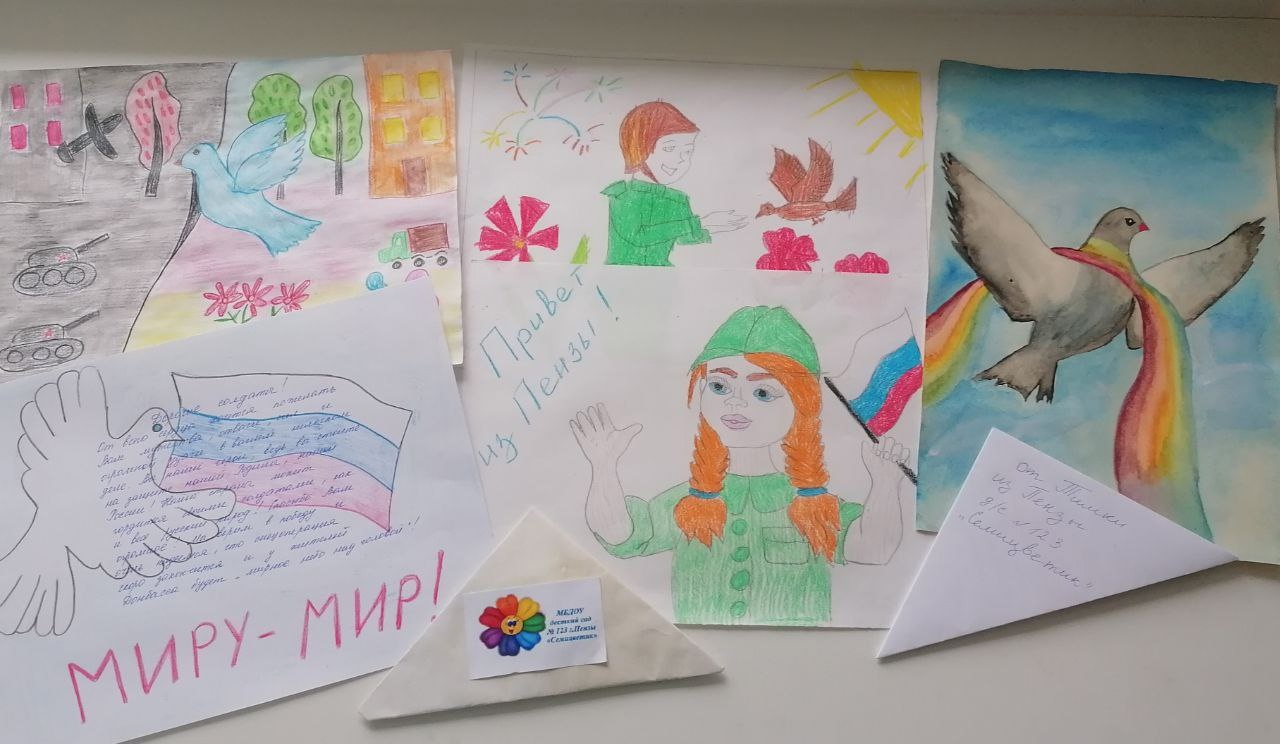 Воспитанники волонтерского центра МБДОУ детский сад 123 г. Пензы «Семицветик» приняли участие в акции Российского движения детей и молодёжи — «Добрые письма». Ребята создали открытки и рисунки, в которых передали, как сильно они гордятся своими солдатами и стремятся подарить нашим защитникам частичку тепла. Все письма переданы волонтерам и обязательно будут доставлены военнослужащим.