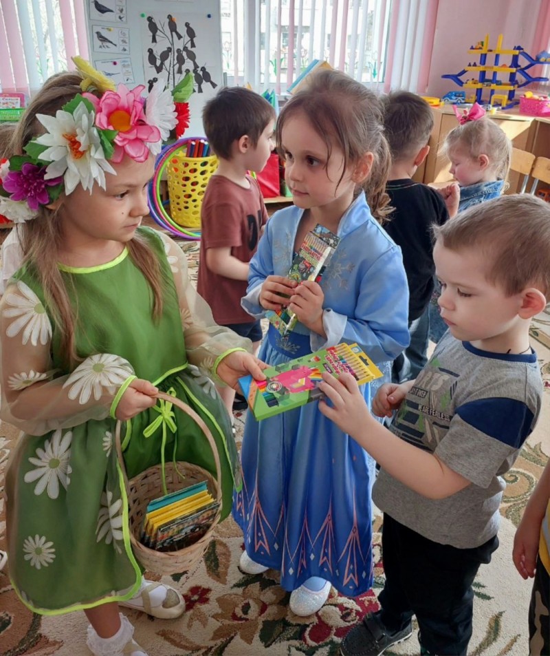 В гости к воспитанникам второй младшей группы пришли дети подготовительной к школе группы. Вместе с Весёлым Карандашом дети отправились в путешествие по стране цветных карандашей.Набор цветных карандашей в красивой коробке остается желанным подарком для любого ребёнка. Все дети любят рисовать или раскрашивать. Ведь рисовать карандашами не просто весело, но еще и очень полезно, так как это прекрасно развивает детскую моторику и мышцы рук, способствует развитию детского творчества, воображения, фантазии, порождает новые эмоции!В завершении путешествия, Весёлый Карандаш подарил детям раскраски, цветные карандаши, воздушные шары и отличное настроение!
