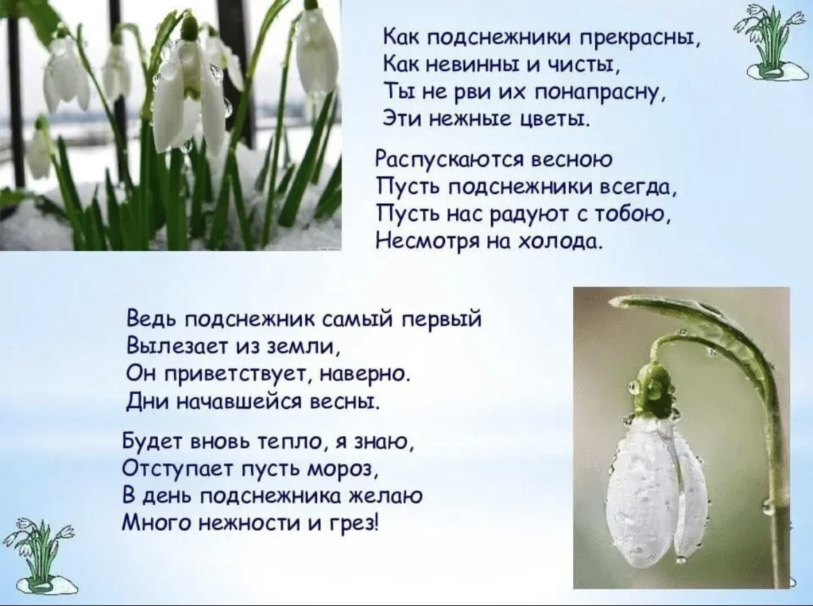 Подснежники — это первые цветы, которые появляются после зимних холодов, символизируют начало весны. Крошечные белоснежные цветки можно заметить на лесных лужайках, в горах и на проталинах. О том, какие бывают подснежники и как они выглядят сегодня узнали воспитанники старшей логопедической группы. Дети сделали подснежники своими руками и украсили ими группу.