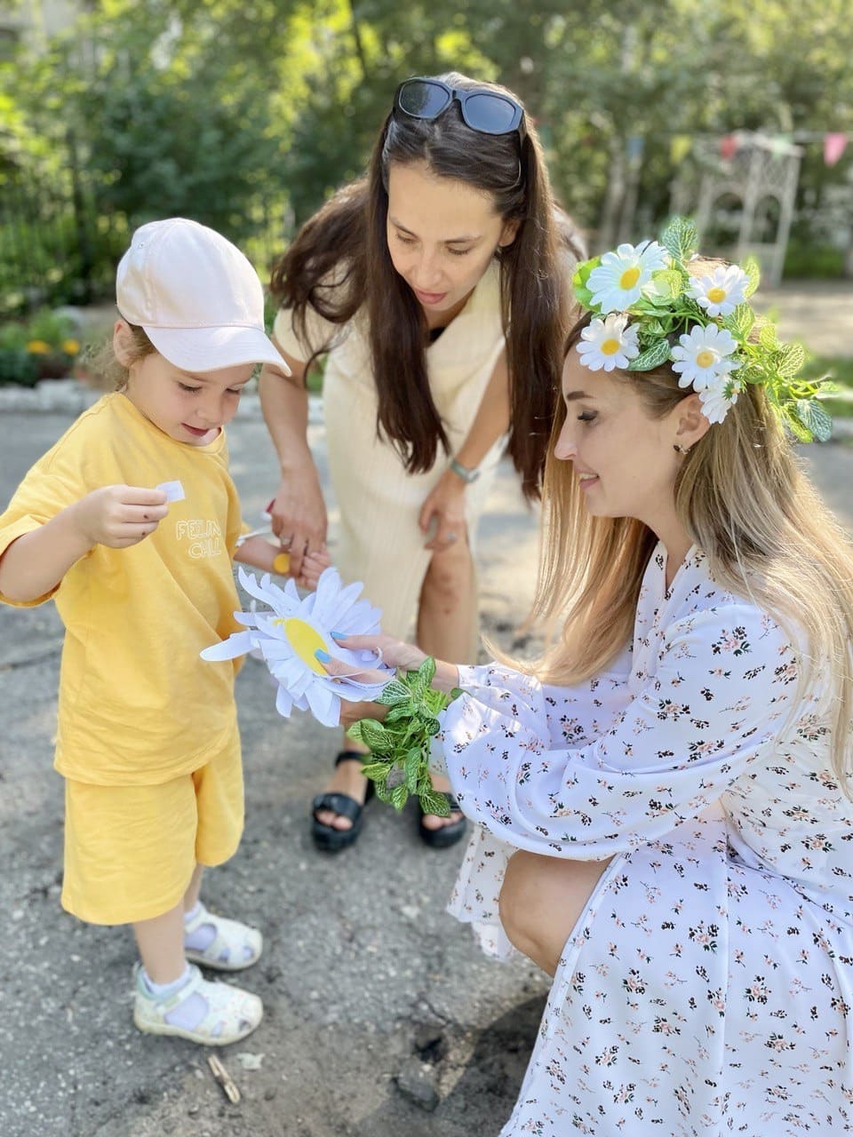 Были проведены тематические беседы о празднике, семье, традициях. Дети познакомились с пословицами, поговорками, художественными произведениями о семье. Выставка детских рисунков «Моя семья – мое богатство!». Выставка поделок «Ромашковая фантазия». Изготовление детьми открыток и сувениров для поздравления родителей. 07.06.2023 г. утро началось с поздравлений, фотосессии «Семейный портрет» и акции «Ромашка пожеланий». Праздничное мероприятие. В программе стихи о семье, песни, танцы, игры, рисование на асфальте фотосессия «Семейный портрет».