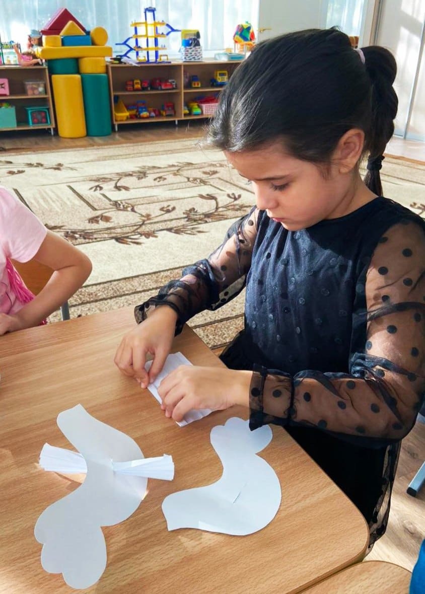 21 сентября, в Международный День Мира, в подготовительных группах прошло тематическое мероприятие. Ребята узнали об истории возникновения праздника, о традиции звонить в Колокол Мира, чтобы призвать всех людей задуматься о сохранении мира на Земле. Своё понимание мира, доброты и дружбы они отразили в изготовлении символа мира — белого голубя.