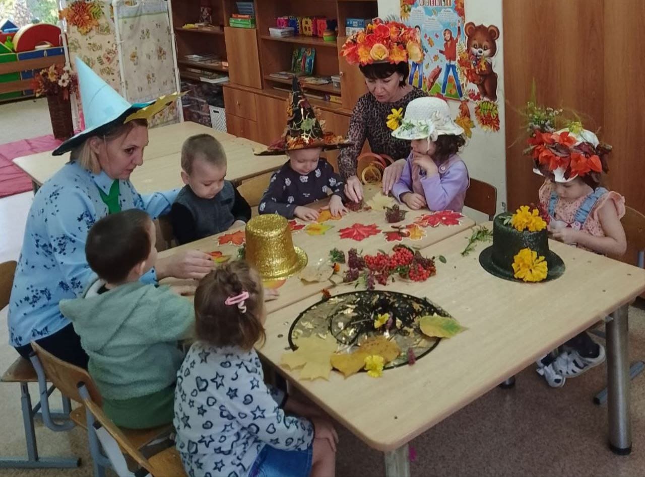 В гости к воспитанникам пришли Незнайка и Шляпка. Вместе с ребятами они танцевали и играли «Попади в шляпу», загадывали детям загадки про осень, украшали шляпки осенними цветами, листьями. Интересным моментом стал показ шляпок! Ребята весело и с удовольствием провели время!