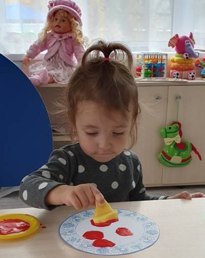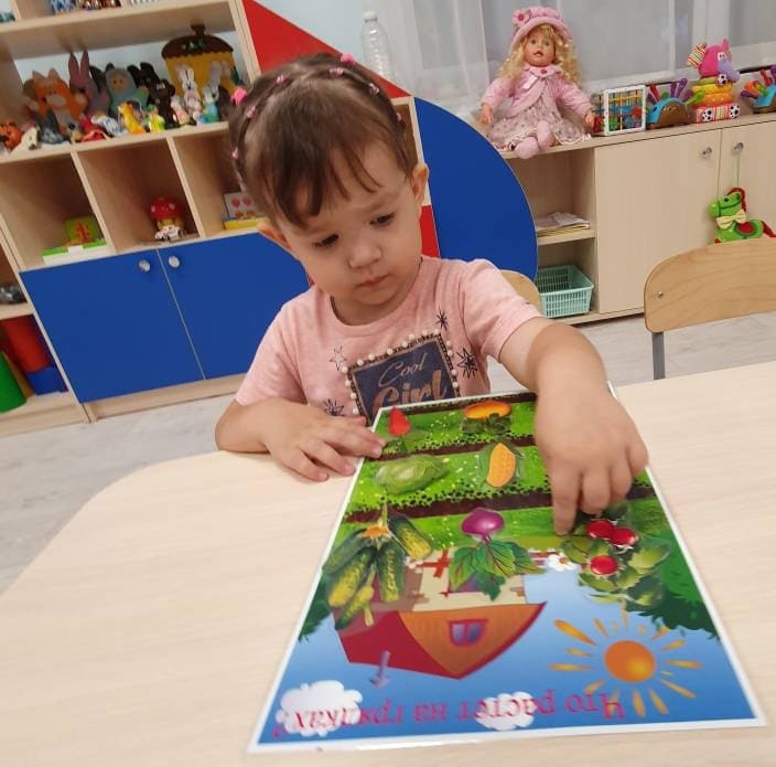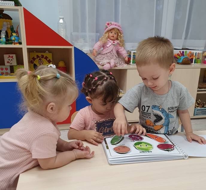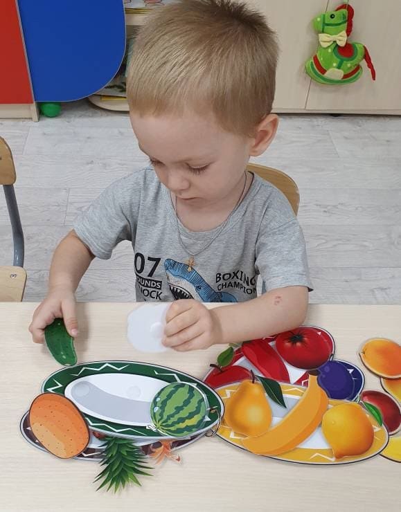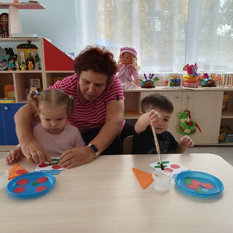 В группе раннего возраста был реализован проект «Фрукты и овощи». Вместе с детьми воспитатели играли в дидактические игры, хороводную игру «Огородная – хороводная», рассматривали картинки. Наш проект был завершён при помощи продуктивной деятельности, где ребятам была предоставлена возможность сделать своими руками аппликацию «Заготовка овощей на зиму» и нарисовать рисунок в нетрадиционной технике» Тарелка с яблоками».