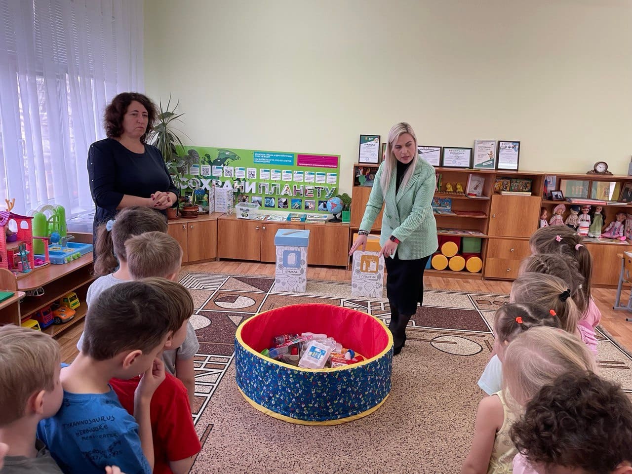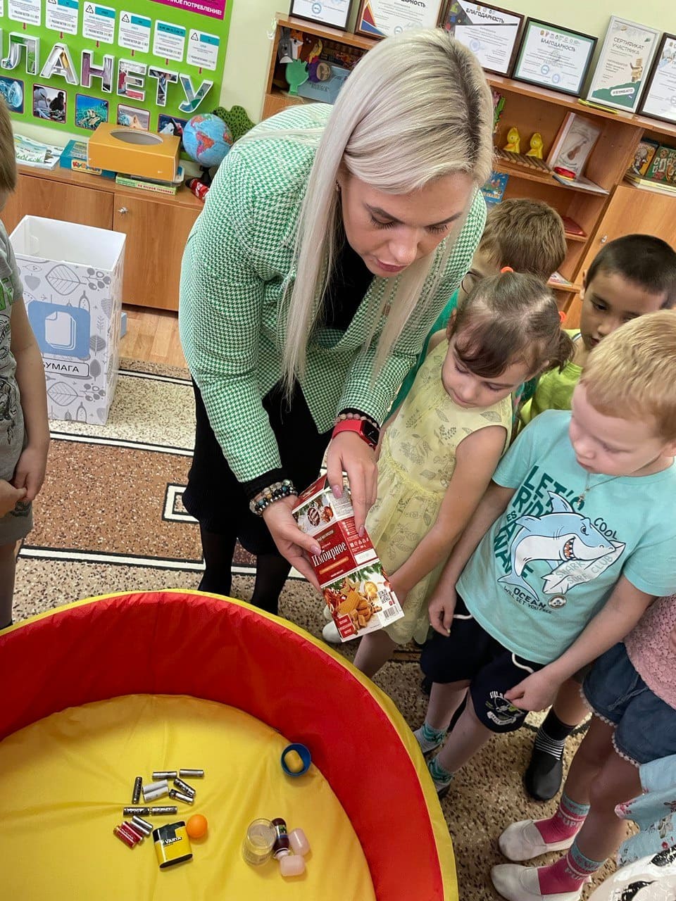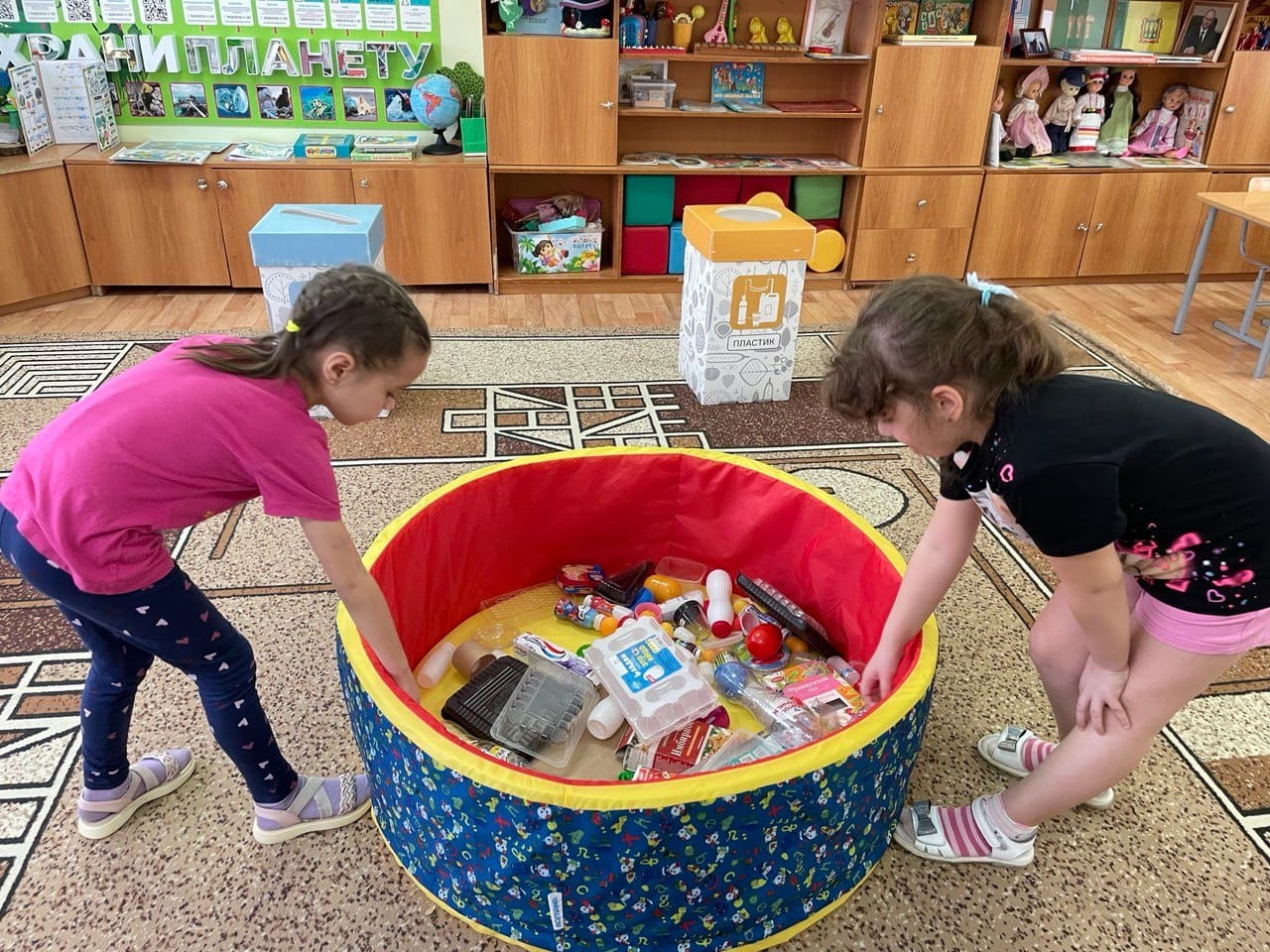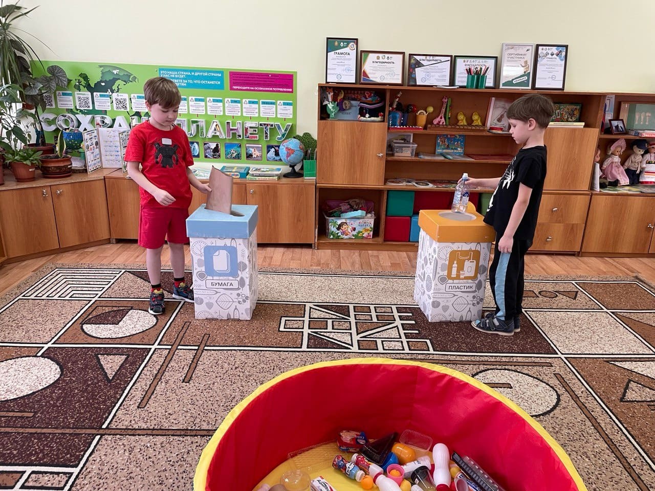 На занятии дети расширили знания о взаимосвязи мира природы и деятельности человека, сформировали понимание о важности вторичного использования бытовых отходов и способах сбережения природных ресурсов. Также в форме эстафеты дети потренировались сортировать пластик и бумагу, узнали о разных видах маркировки упаковок, дети посмотрели мультфильм о вторичной переработке отходов, поиграли в дидактическую игру «Сортировка отходов», познакомились с произведениями: Я. Аким «Наша планета», С. Михалков «Стон земли», «Прогулка».
