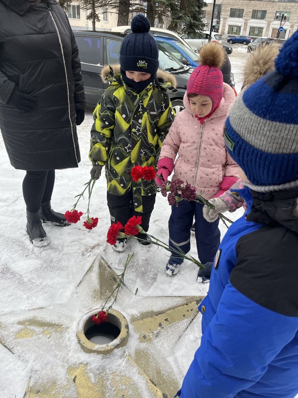 Дети познакомились с историей памятной даты, прочитали стихи о Родине, воинах, подаривших нам мир. Вместе с родителями совершили экскурсию к памятнику» Их нет, но они с нами», возложили цветы, почтили память солдат минутой молчания.