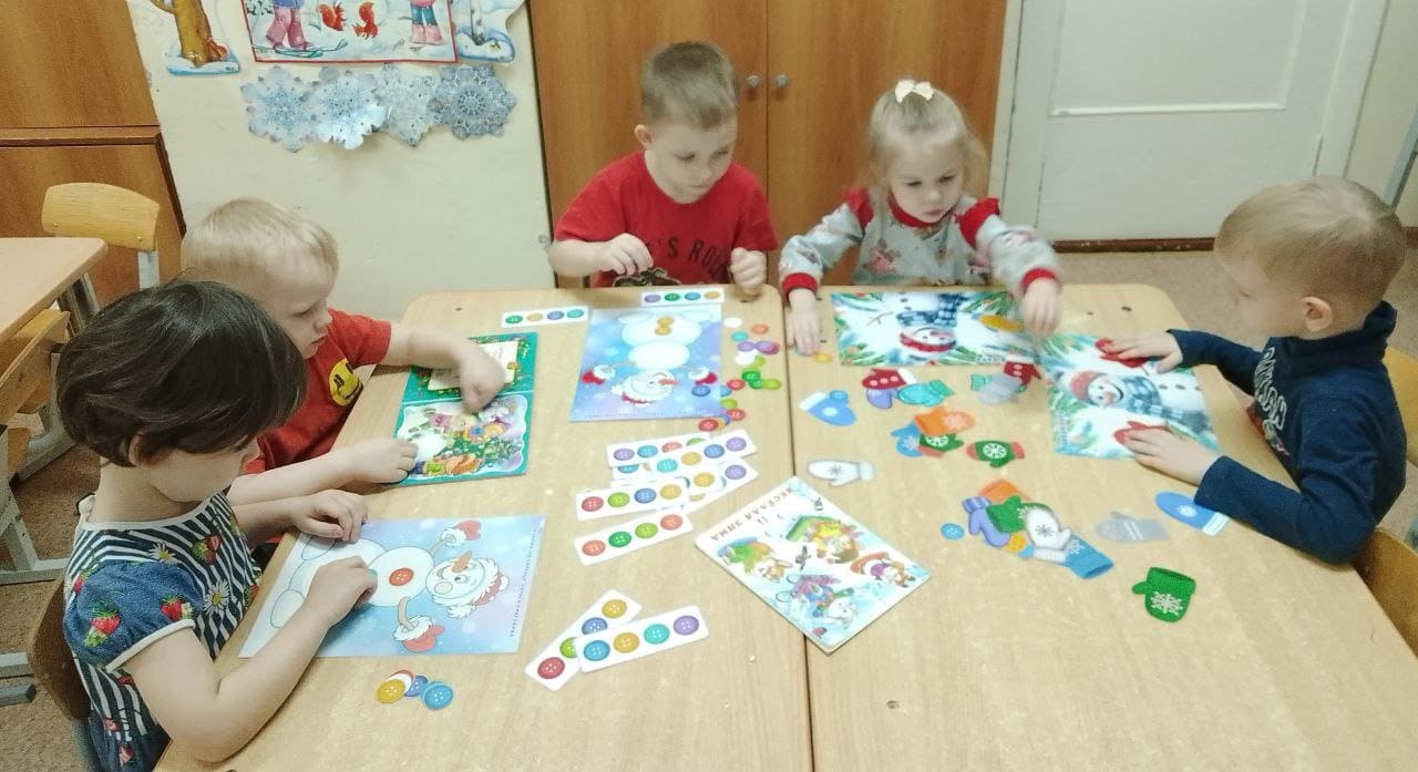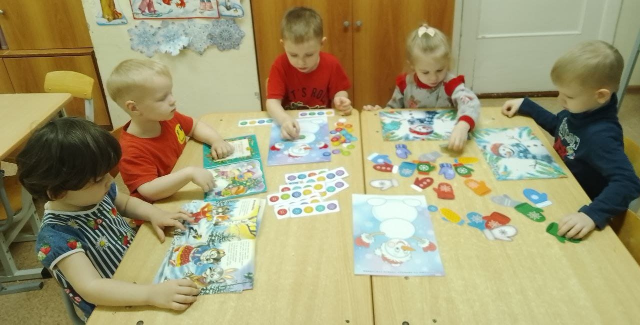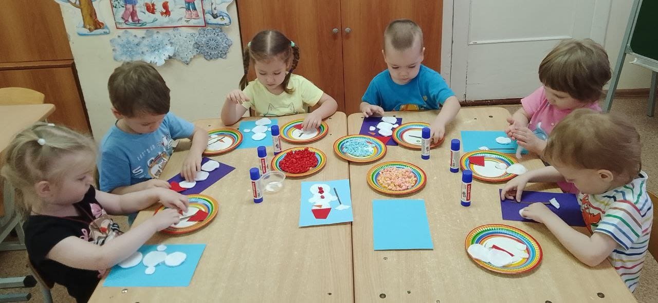 Ребята с удовольствием играли в д/и «Собери снеговика»,»Найди пару»,рассматривали картинки снеговиков и сделали аппликацию в подарок имениннику!