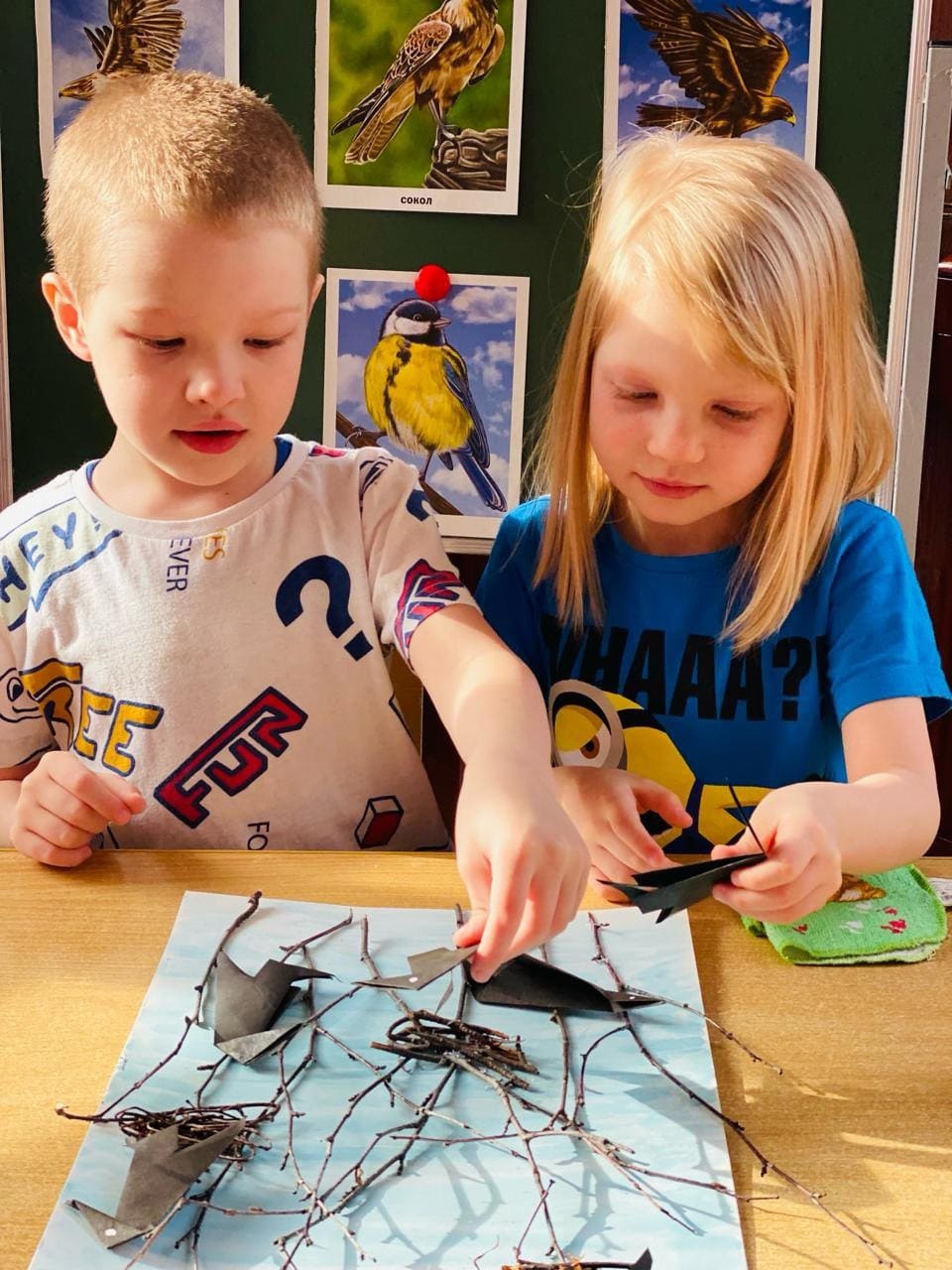 А также дети сделали поделки, коллаж» Прилет грачей».