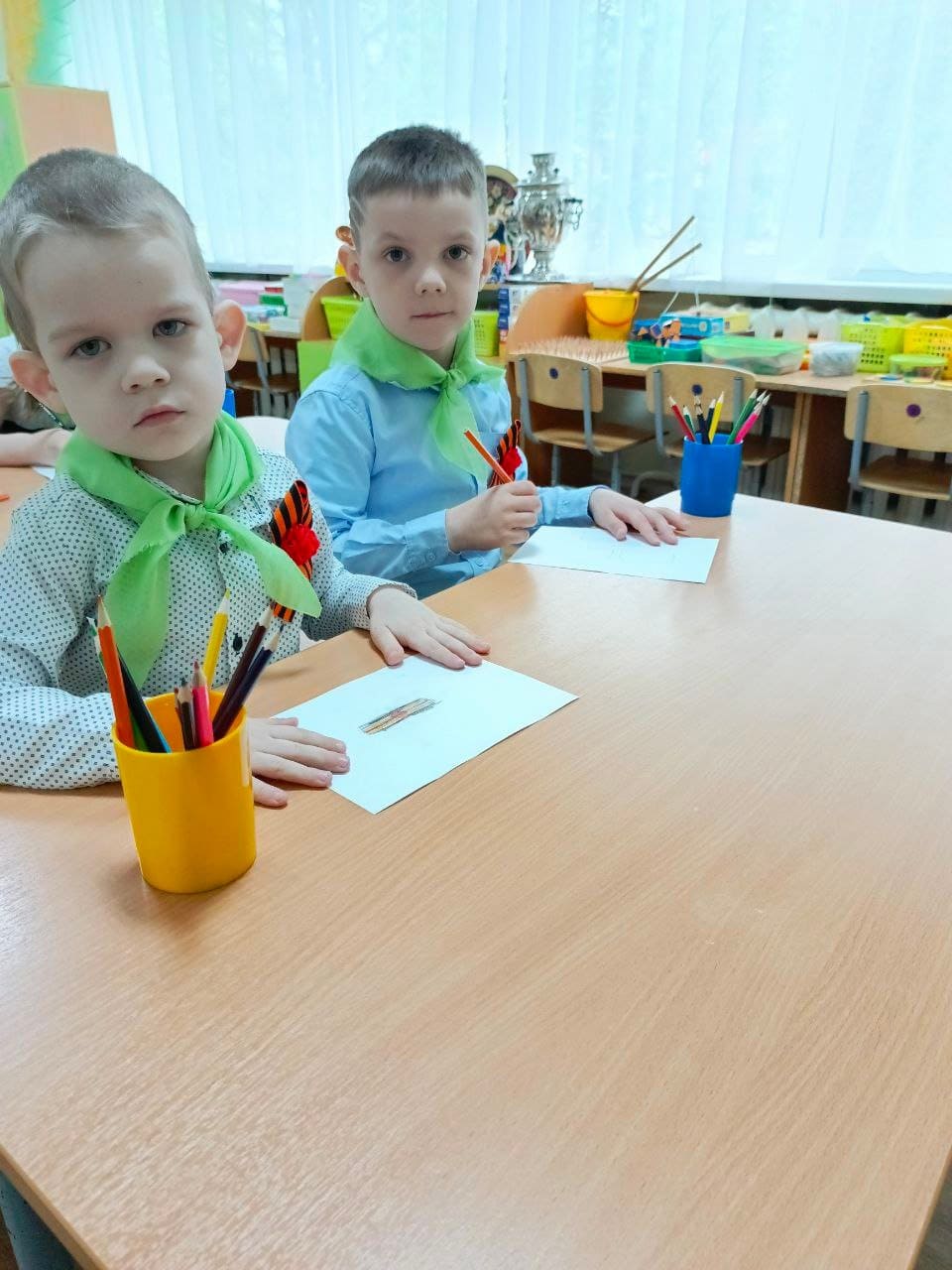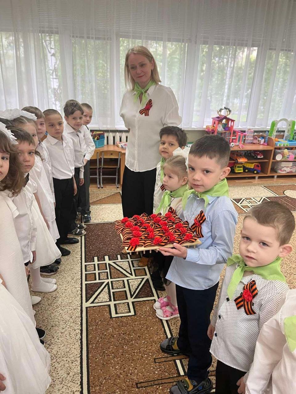 Воспитанники и педагоги детского сада присоединились к Всероссийской акции «Георгиевская ленточка», которая ежегодно проходит с 24 апреля по 9 мая на территории Российской федерации. Главная цель акции — дать возможность каждому человеку выразить своё уважение к ветеранам войны, почтить память павших и продемонстрировать гордость за героическое прошлое и настоящее нашей Родины.