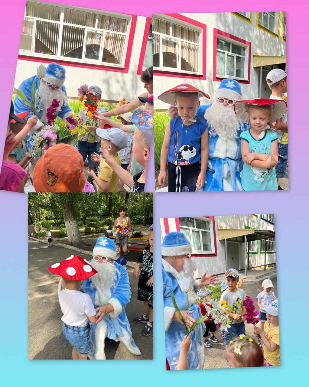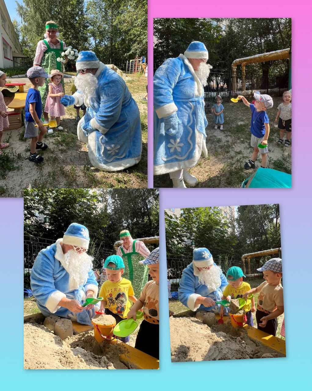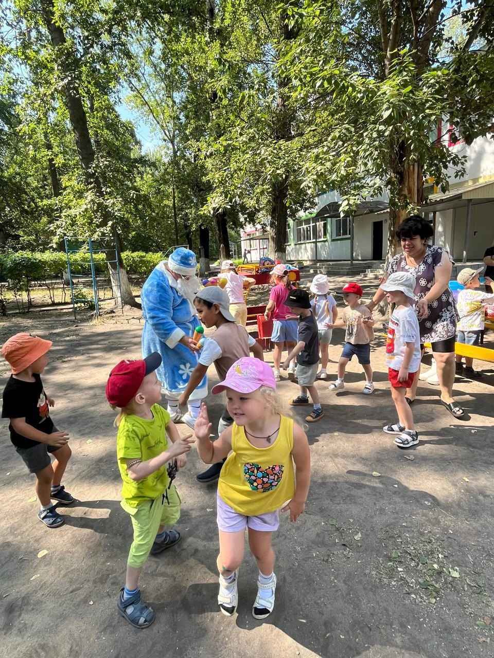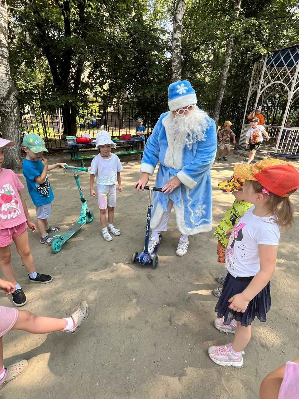 Сегодня в детский сад пожаловал самый настоящий Дед Мороз, который абсолютно не знал, что такое лето. Ребята с удовольствием объяснили и показали дедушке, что летом тоже можно веселиться, играть!