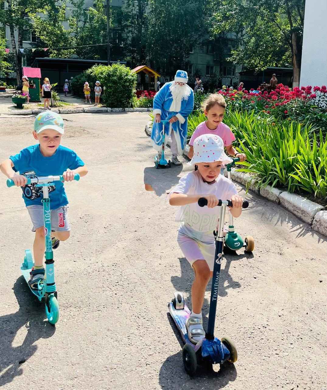 Научили гостя кататься на самокате, дули на Мороза «волшебным ветерком», чтобы тот не растаял и угостили