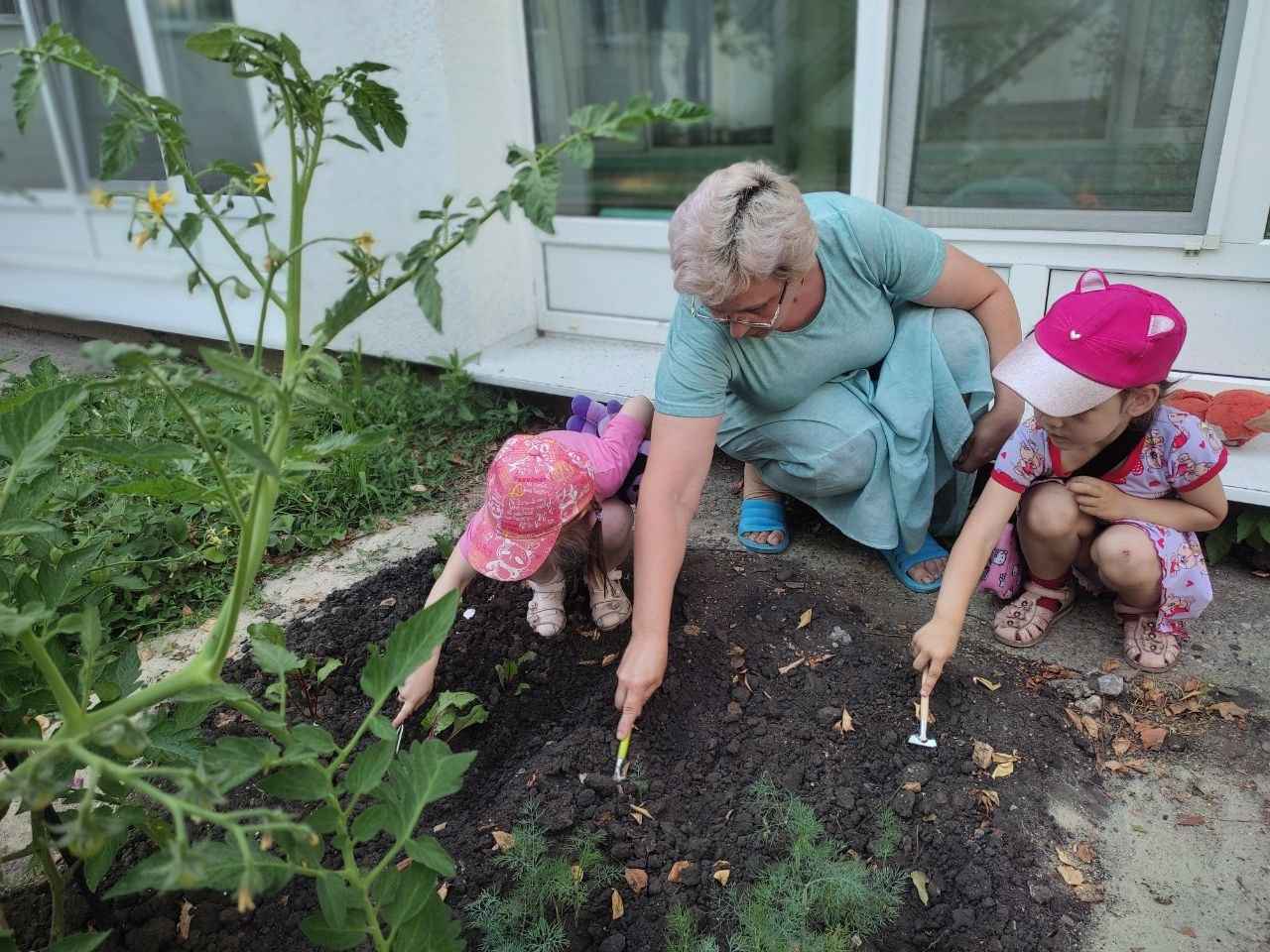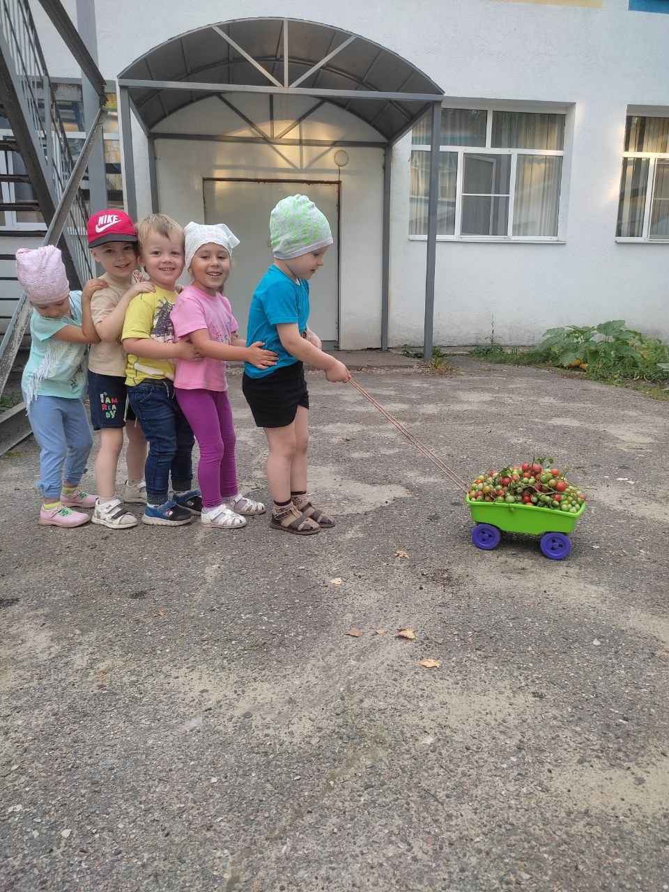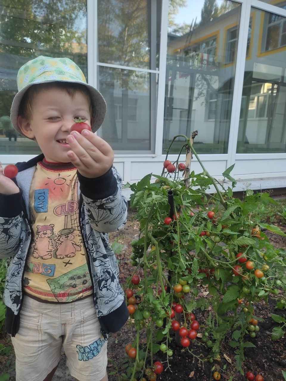 Дети детского сада, совместно с воспитателями и родителями посадили весной свои маленькие огороды, ухаживали за ними, поливали, рыхлили почву и наблюдали за тем, как из маленьких росточков росли и развивались огурцы, томаты, кабачки, перцы и другие овощи. Посмотрите, на наш богатый урожай!