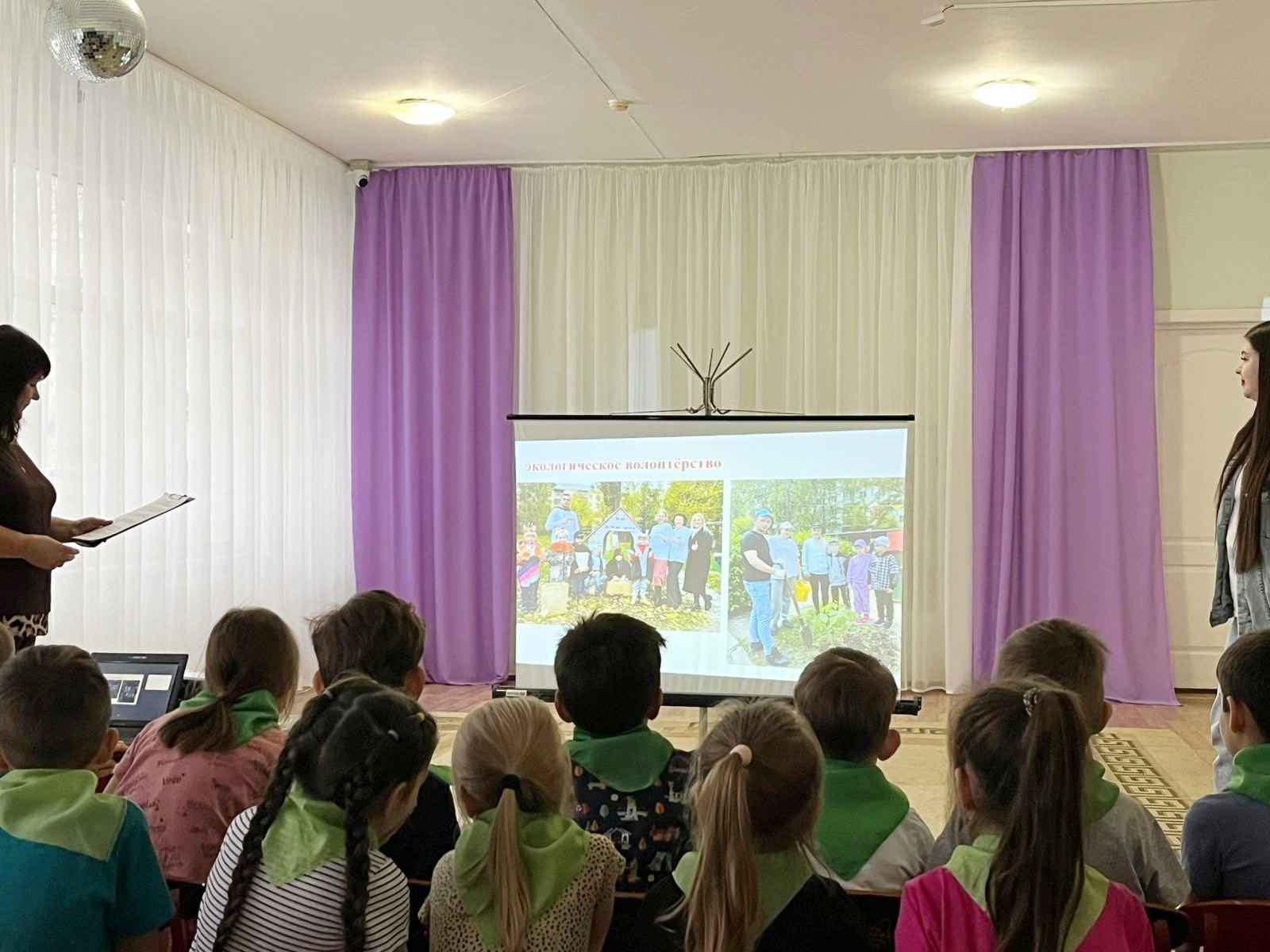 Специалисты Регионального ресурсного добровольческого центра рассказали детям о том, как стать волонтёрами, какие задачи они выполняют и каким образом приносят пользу людям! А дошколята поделились с гостями результатами своей деятельности и познакомили гостей с фотовыставкой «Творим добро». Затем в торжественной обстановке прошло посвящение воспитанников детского сада в ряды волонтеров.