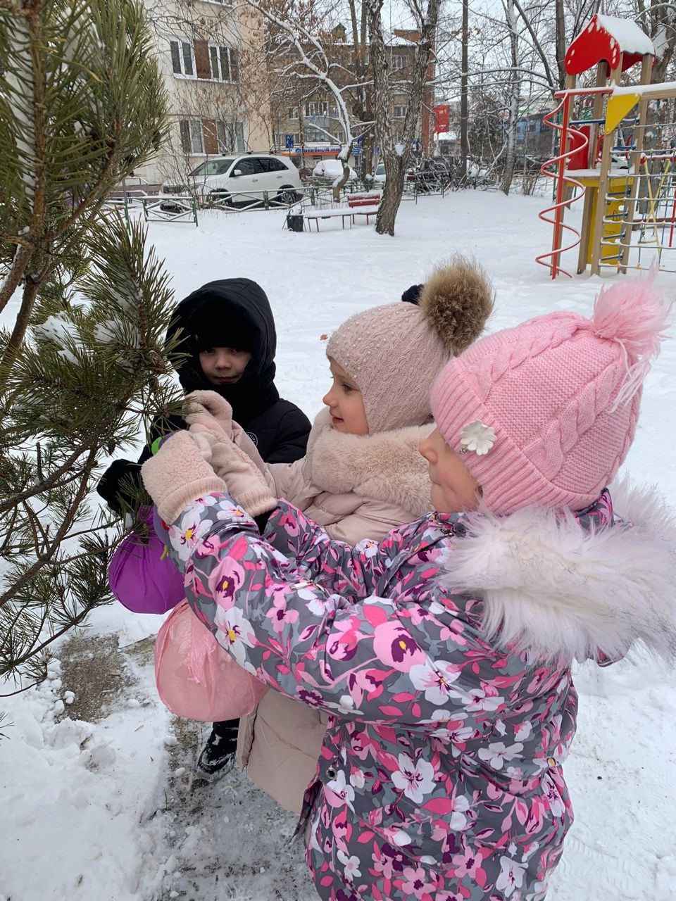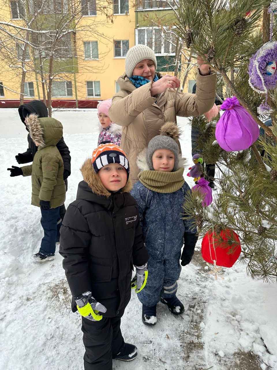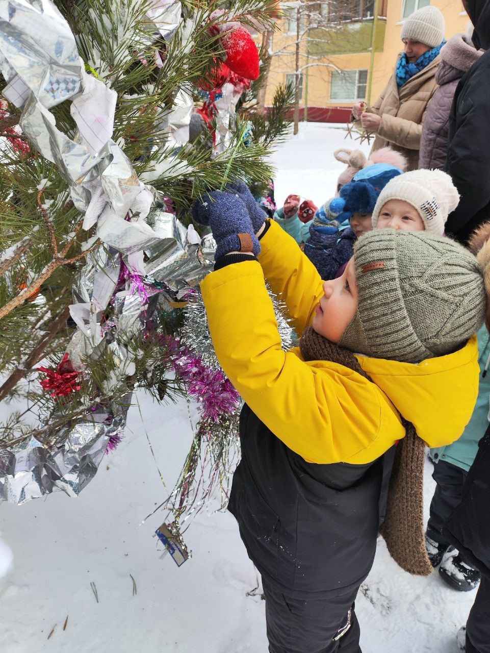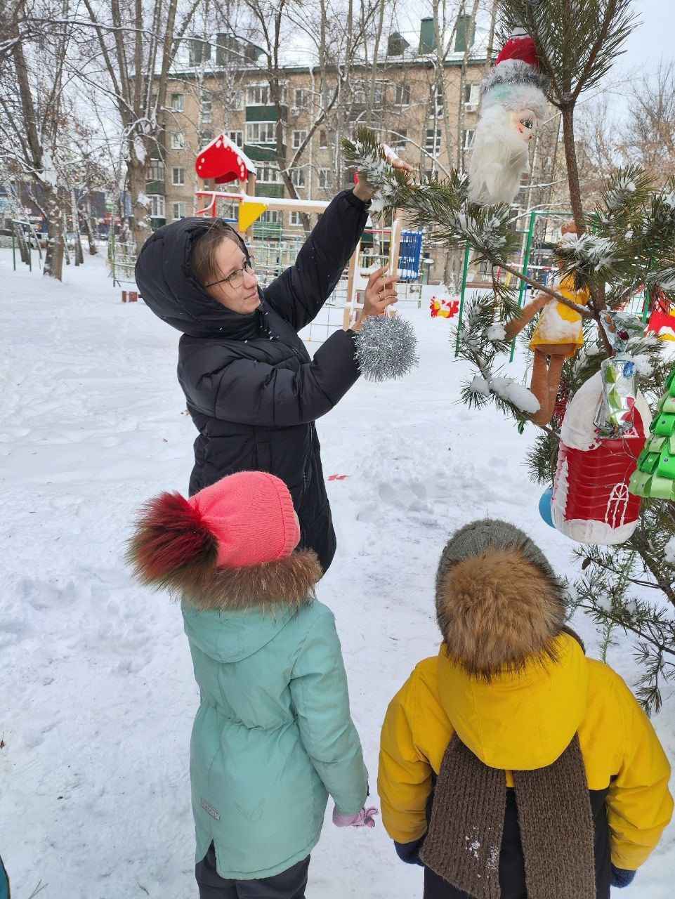 Украшать новогоднюю красавицу отправились воспитанники подготовительной и старшей логопедических групп, приняв участие в традиционной акции «Ёлка соседнего двора». Ребята своими руками смастерили ёлочные игрушки, украсили ёлку и водили хоровод.