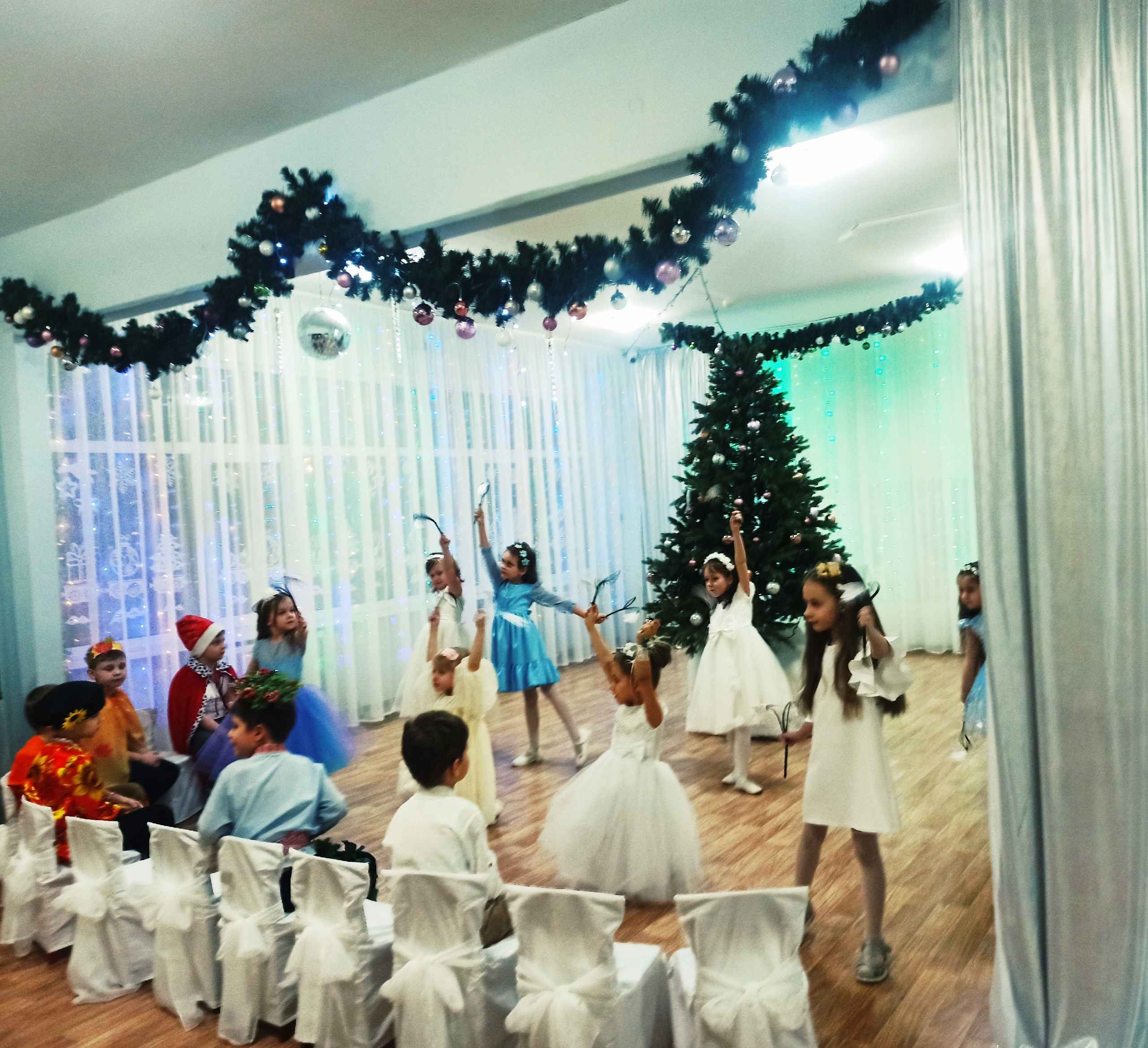 Новогодние утренники — это одни из самых ожидаемых событий в детском саду. Для детей это особенное время, когда они могут окунуться в волшебный мир сказки, добра, веселья! Во время праздника ребята погрузились в мир чудес, приключений, невероятных превращений и сюрпризов. Под громкие аплодисменты зрителей, которые получили массу положительных эмоций, наши дети танцевали, пели песни, читали стихотворения, водили хороводы, с удовольствием участвовали в играх и конкурсах!