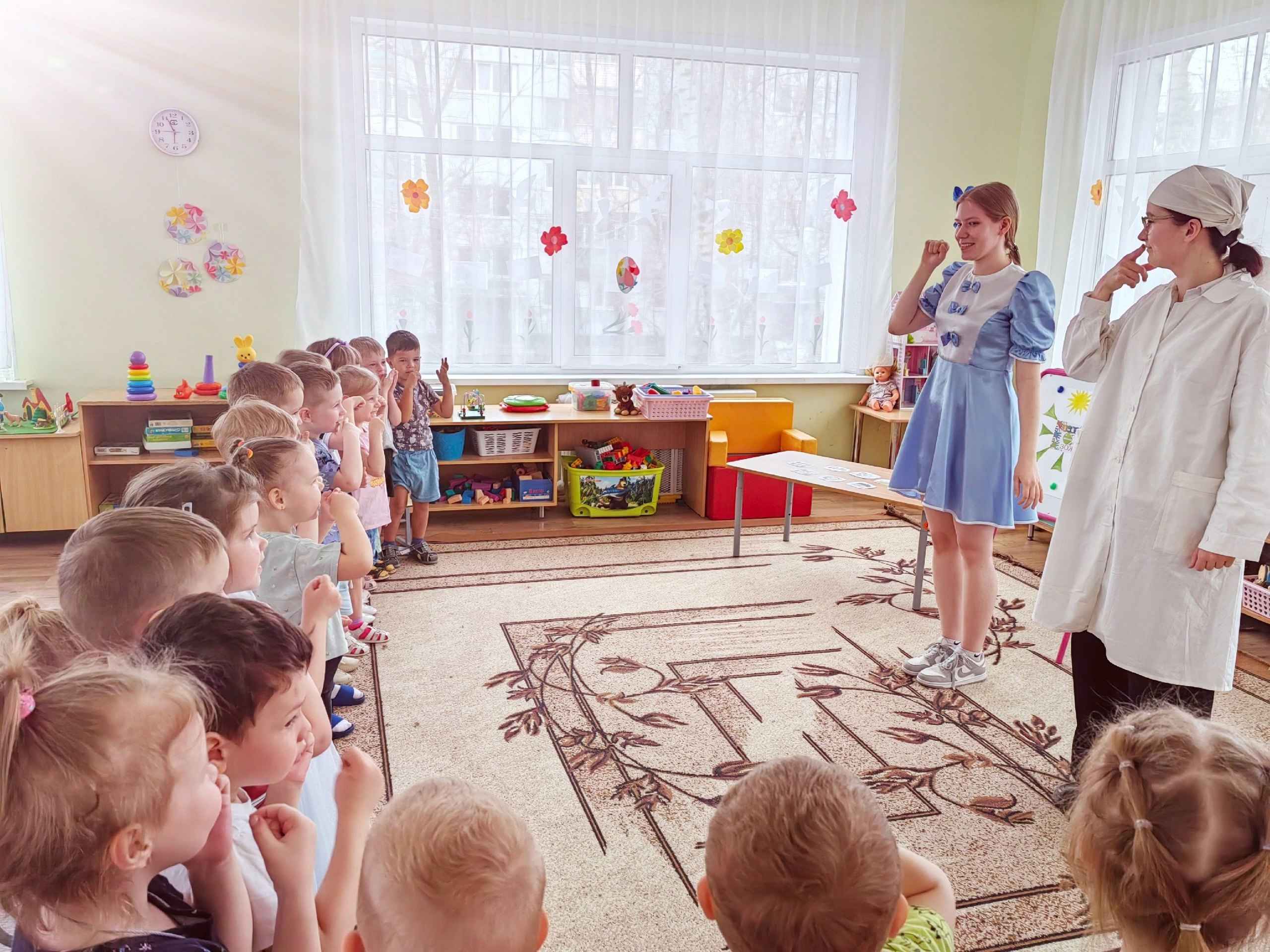 В гости к ребятам пришли доктор Пилюлькин и Мальвина! Они провели беседу на тему: «Что значит быть здоровым?», также проводились дидактические игры «Что полезно, а что вредно для здоровья», «Собери фрукты и овощи». Мальвина закрепила с ребятами навыки личной гигиены и их значение для здоровья детей, все вместе оформили газету «Мы выбираем ЗОЖ».