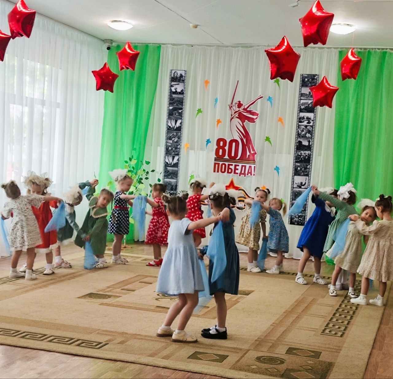 В концерте приняли участие дошкольники 2младшей,средних, старших и подготовительных групп. Ребята читали стихотворения о Родине и Великой Отечественной войне, пели песни и исполнили трогательные танцевальные номера под музыку военных лет. Программа мероприятия была очень насыщенной и разнообразной. Каждое выступление было подготовлено с большой любовью и уважением к памяти о тех, кто защитил нашу Родину. Ребята смогли передать всю искренность исполняемого.