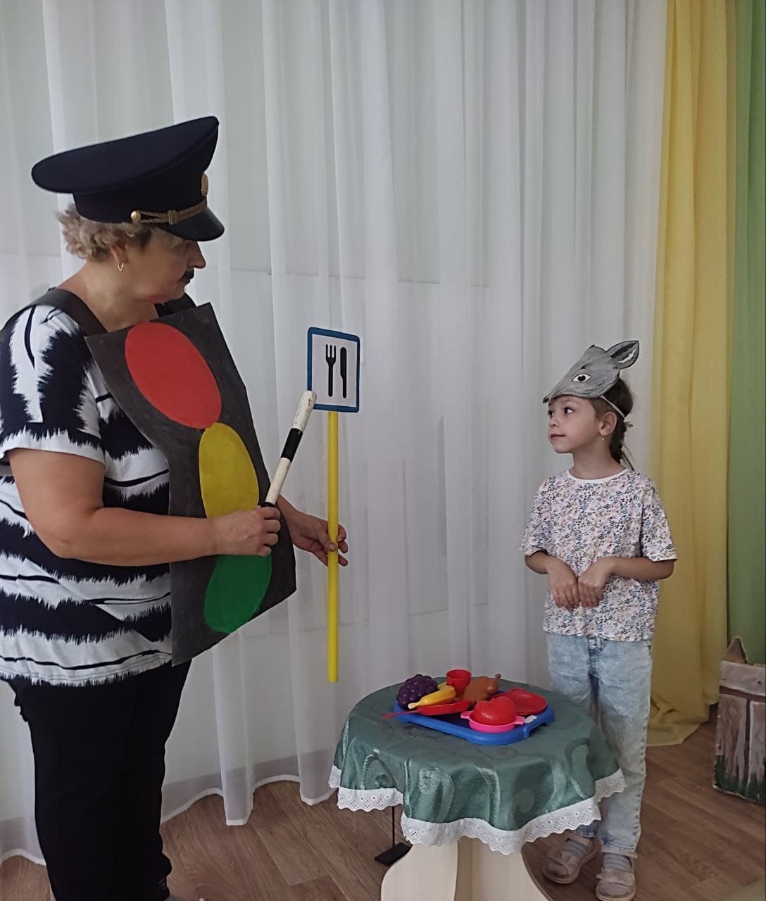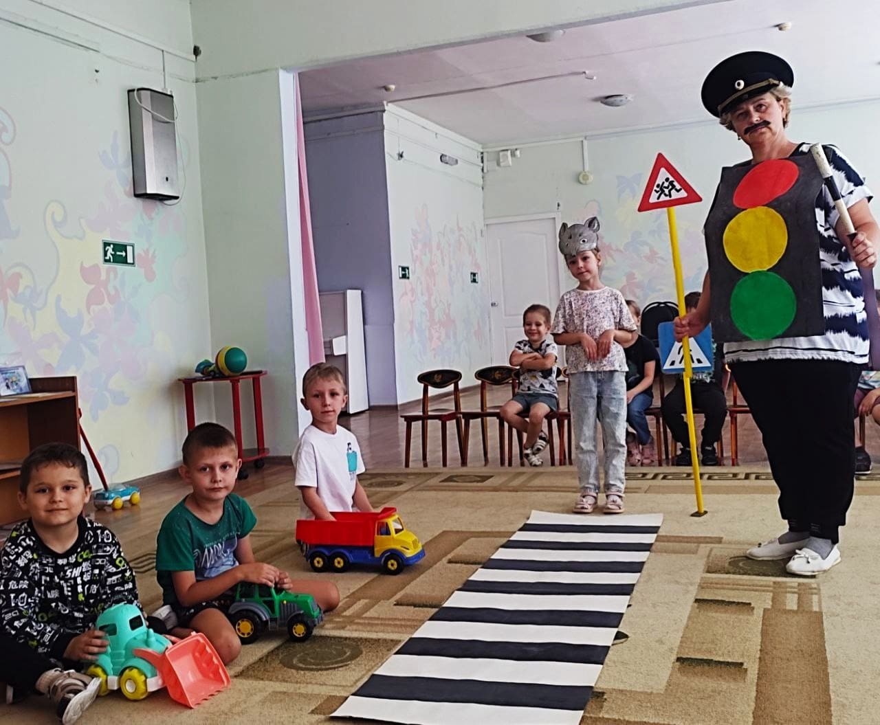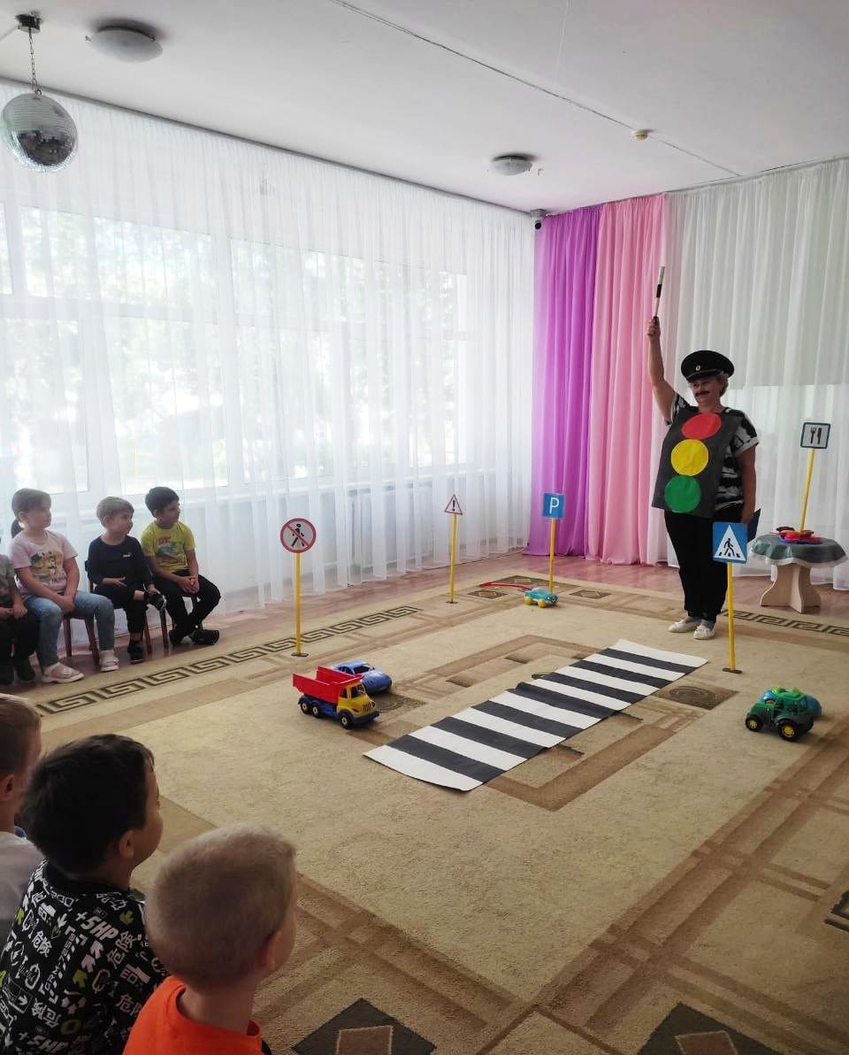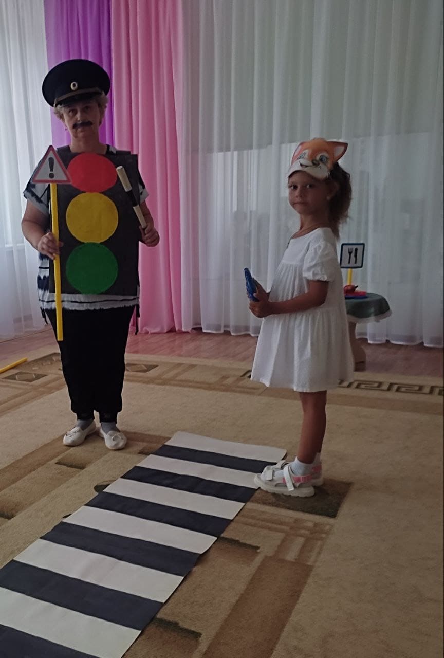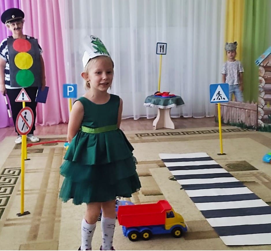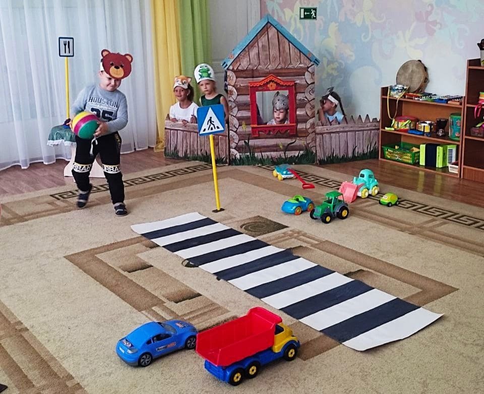 В группе прошло театрализованное представление» Дорога к теремку», его целью является закрепление знаний правил дорожного движения. Дети увидели, при помощи героев, как нельзя вести себя на проезжей части, вспомнили названия дорожных знаков и значение сигналов светофора.
