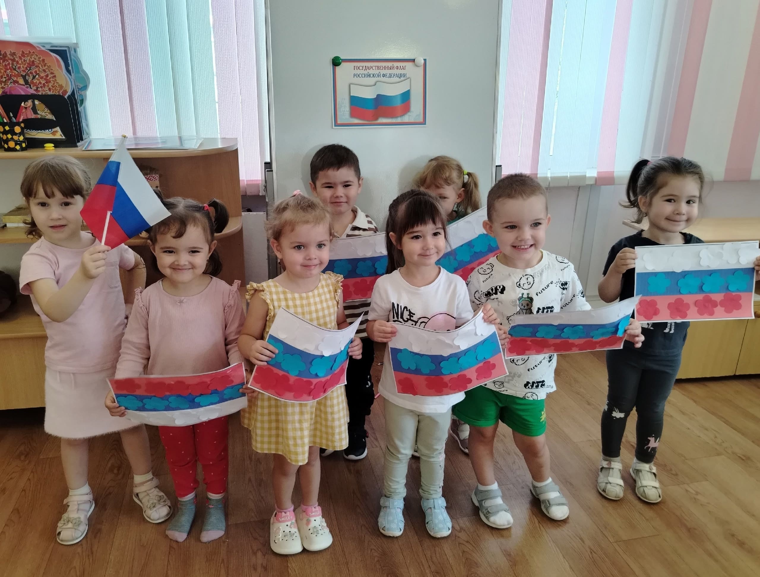 Наши маленькие волонтёры приняли участие во всероссийской акции «Цвета Родины», вручили родителям флаги и поделились своими знаниями об истории флага.