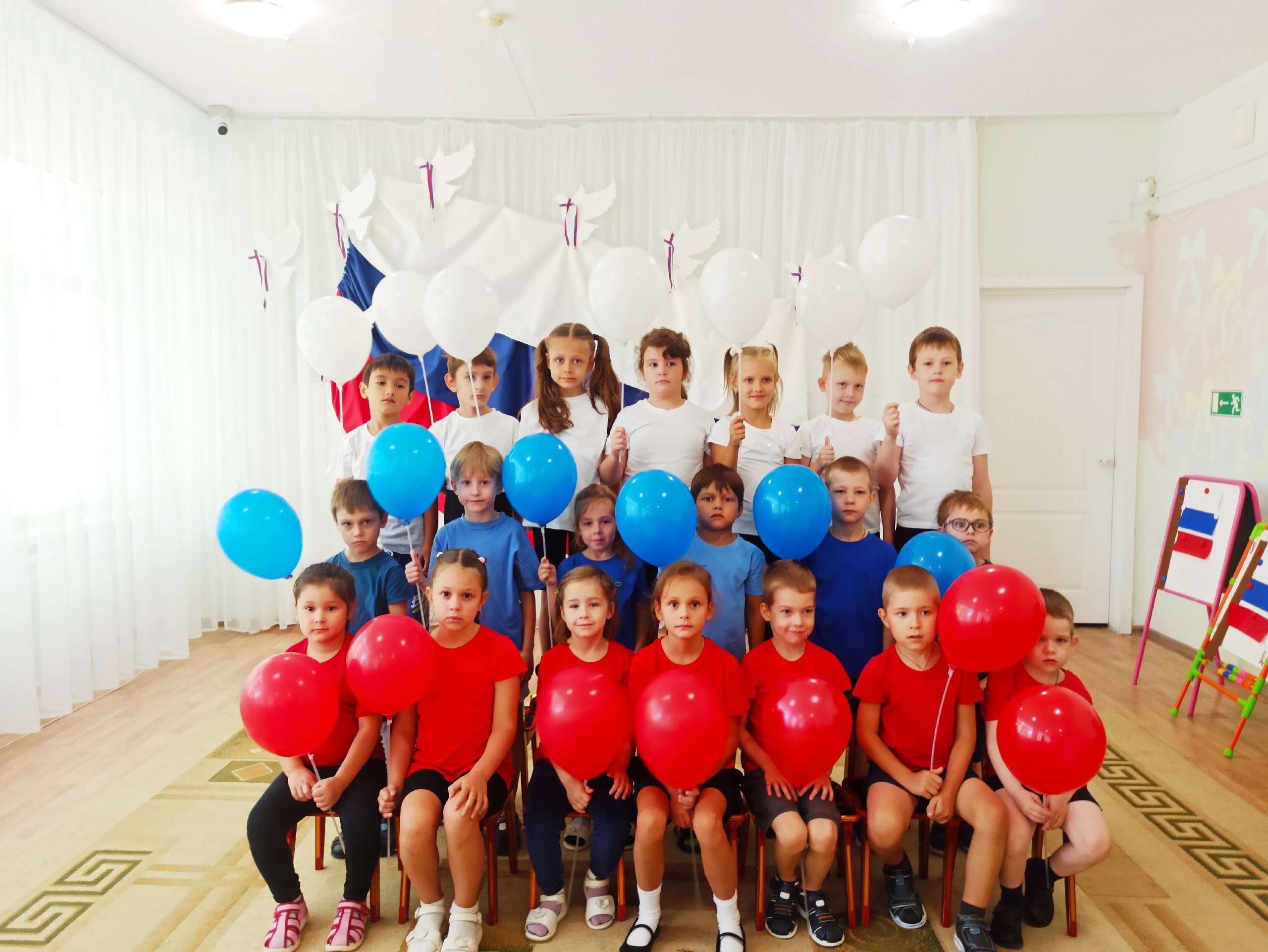 Традиционно 22 августа в нашем детском саду было организованно и проведено мероприятие, на котором ребята узнали о значимости флага для нашего государства.