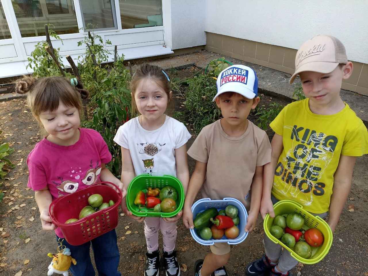 Дети детского сада, совместно с воспитателями и родителями посадили весной свои маленькие огороды, ухаживали за ними, поливали, рыхлили почву и наблюдали за тем, как из маленьких росточков росли и развивались огурцы, томаты, кабачки, перцы и другие овощи.