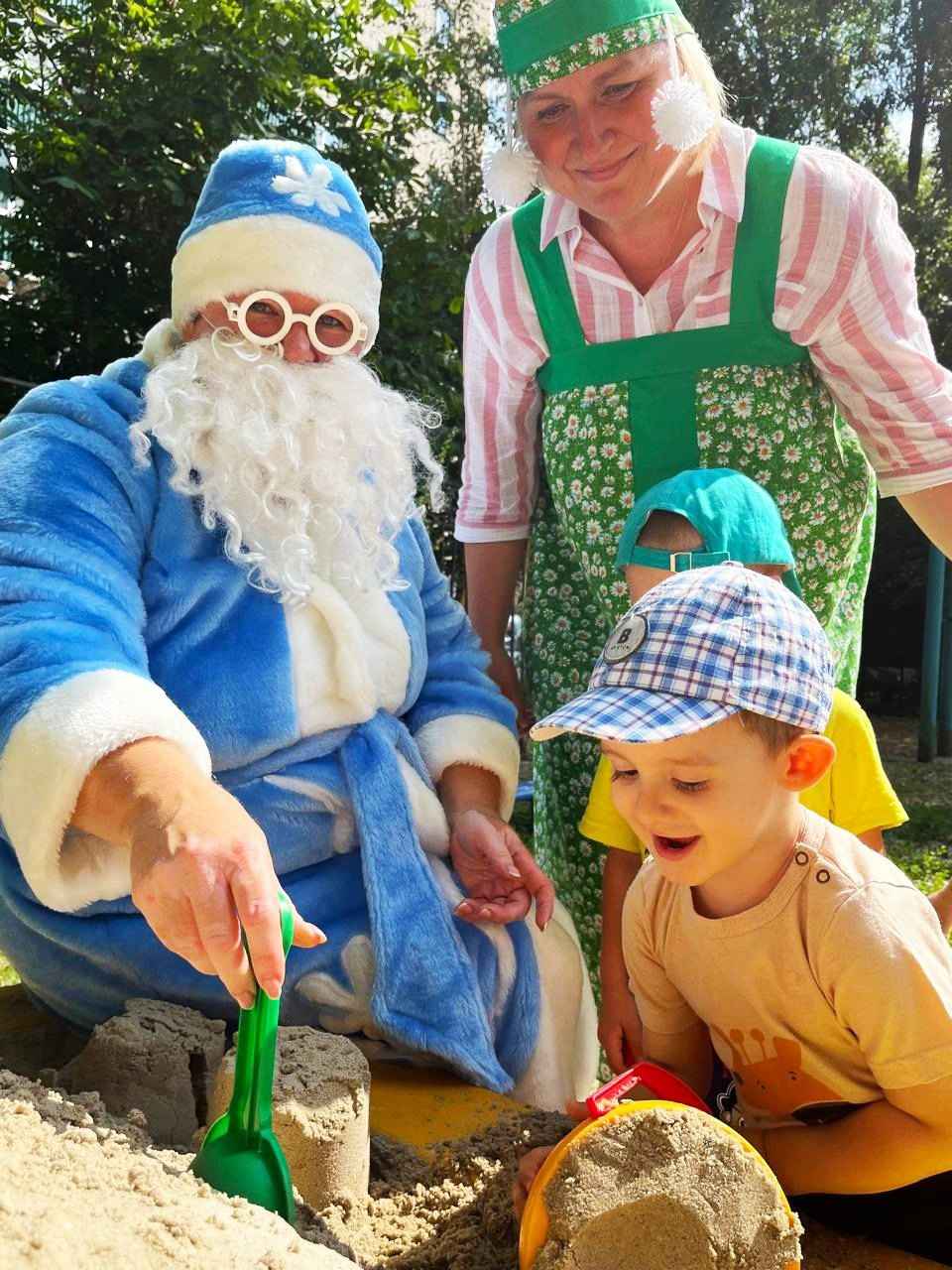 Сегодня в детский сад пожаловал самый настоящий Дед Мороз, который абсолютно не знал, что такое лето. Ребята с удовольствием объяснили и показали дедушке, что летом тоже можно веселиться, играть!