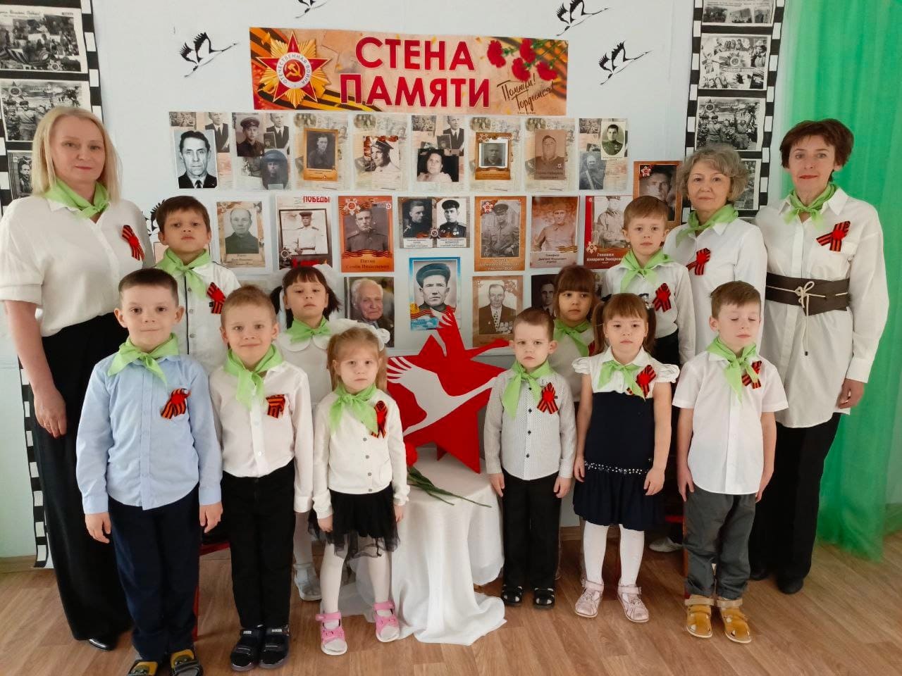 Воспитанники и педагоги детского сада присоединились к Всероссийской акции «Георгиевская ленточка», которая ежегодно проходит с 24 апреля по 9 мая на территории Российской федерации.