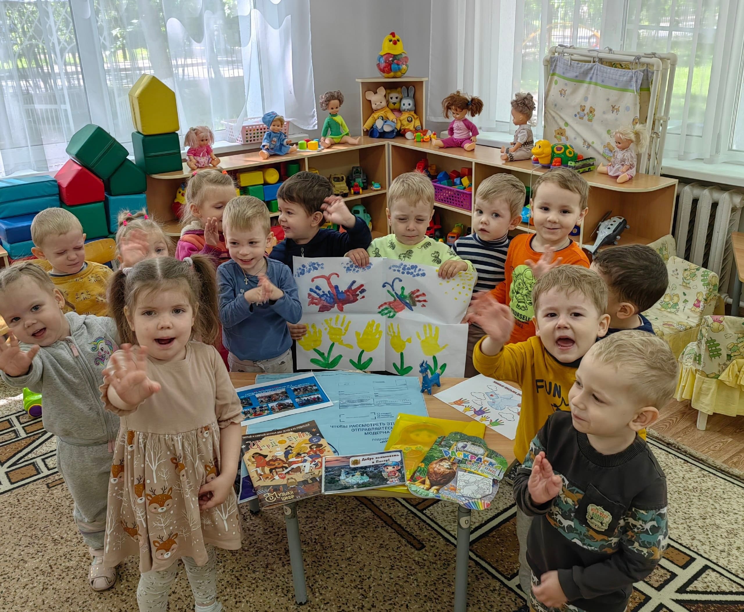 Дети и родители 1 младшей группы N 2 продолжают участвовать во Всероссийской акции «Живые письма дошкольников». Сегодня они собрали и отправили ответное письмо воспитанникам 2 младшей группы детского сада г. Камышлов Свердловской области.