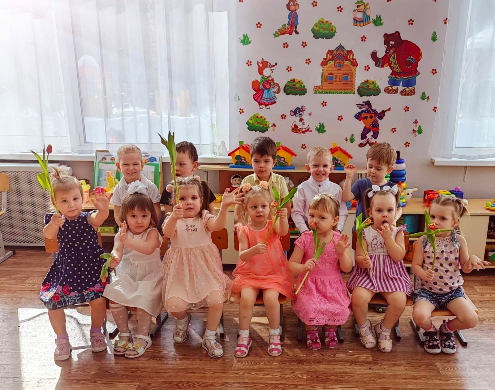 В 1 младшей группе N2 прошёл праздник, посвящённый Международному женскому дню! Малыши танцевали, играли, пели песни. Мальчики поздравили юных представительниц прекрасного пола и подарили им тюльпаны.