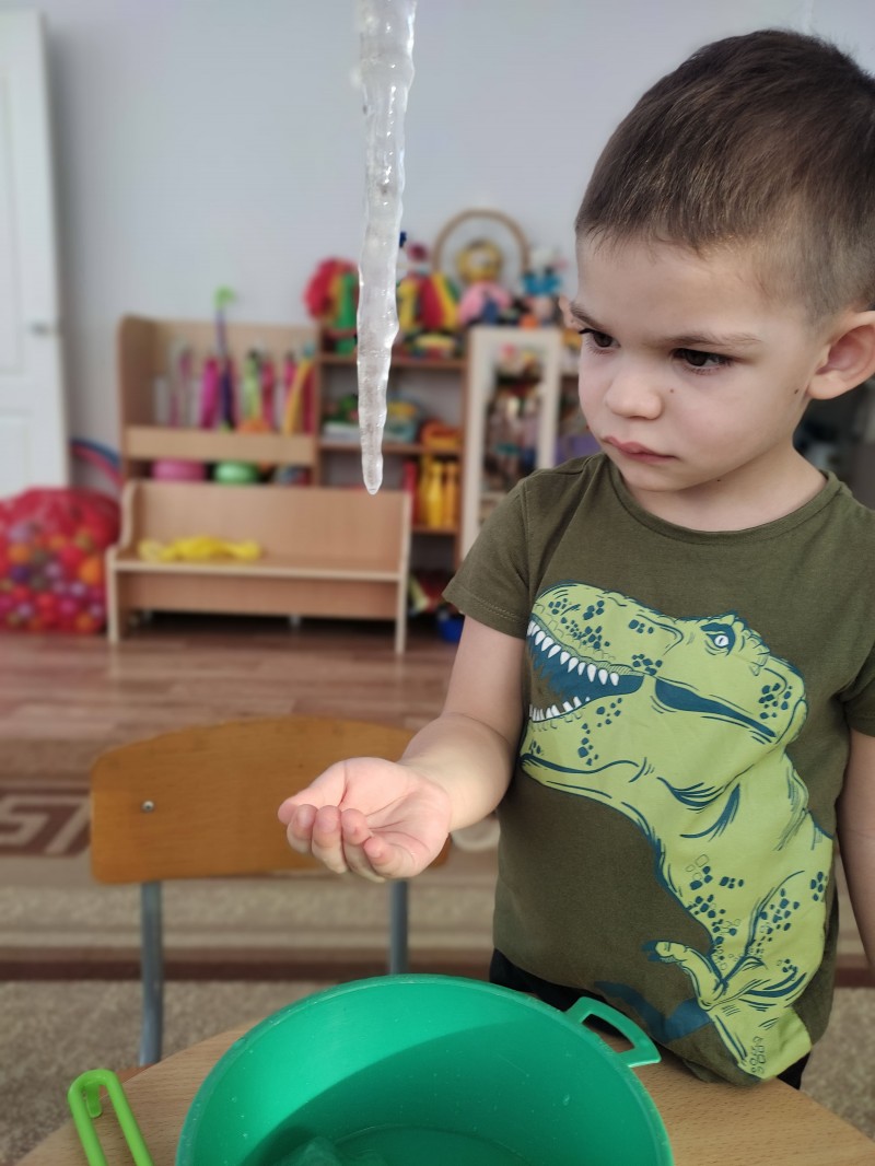 Занятие по изобразительной деятельности «Плачущие сосульки» в 1 младшей группе (воспитатель Иноземцева Н. С.) плавно перешло в экспериментирование со снегом и льдом.